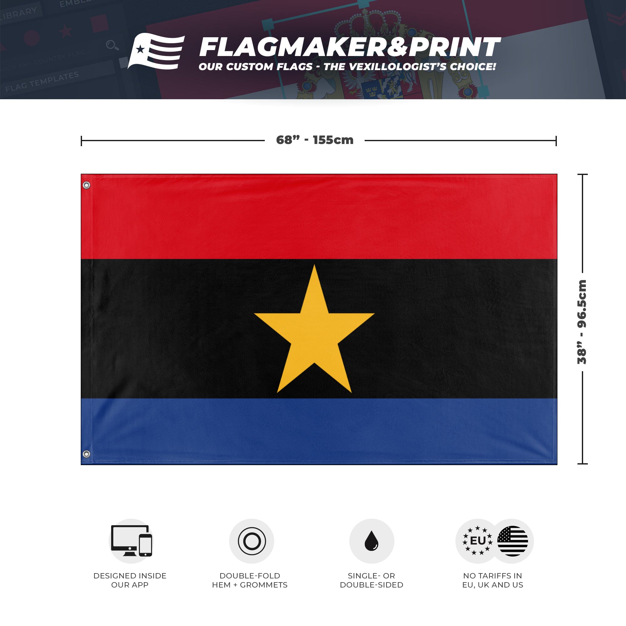📐 Custom Flag made with Flagmaker & Print. Learn more about our product line-up on the Product Details page. This custom flag design is available as both a one-sided wall flag, or a double-sided display flag.