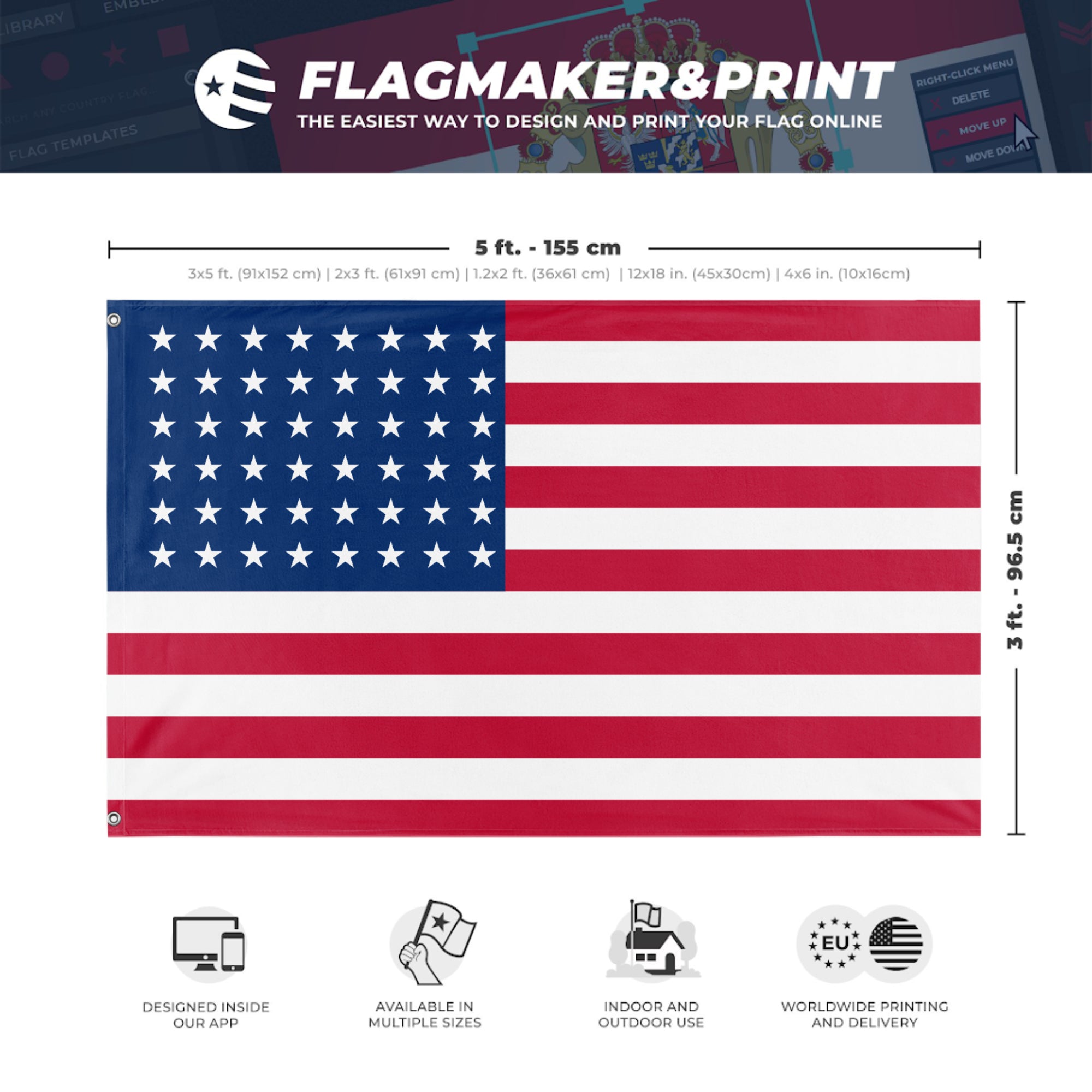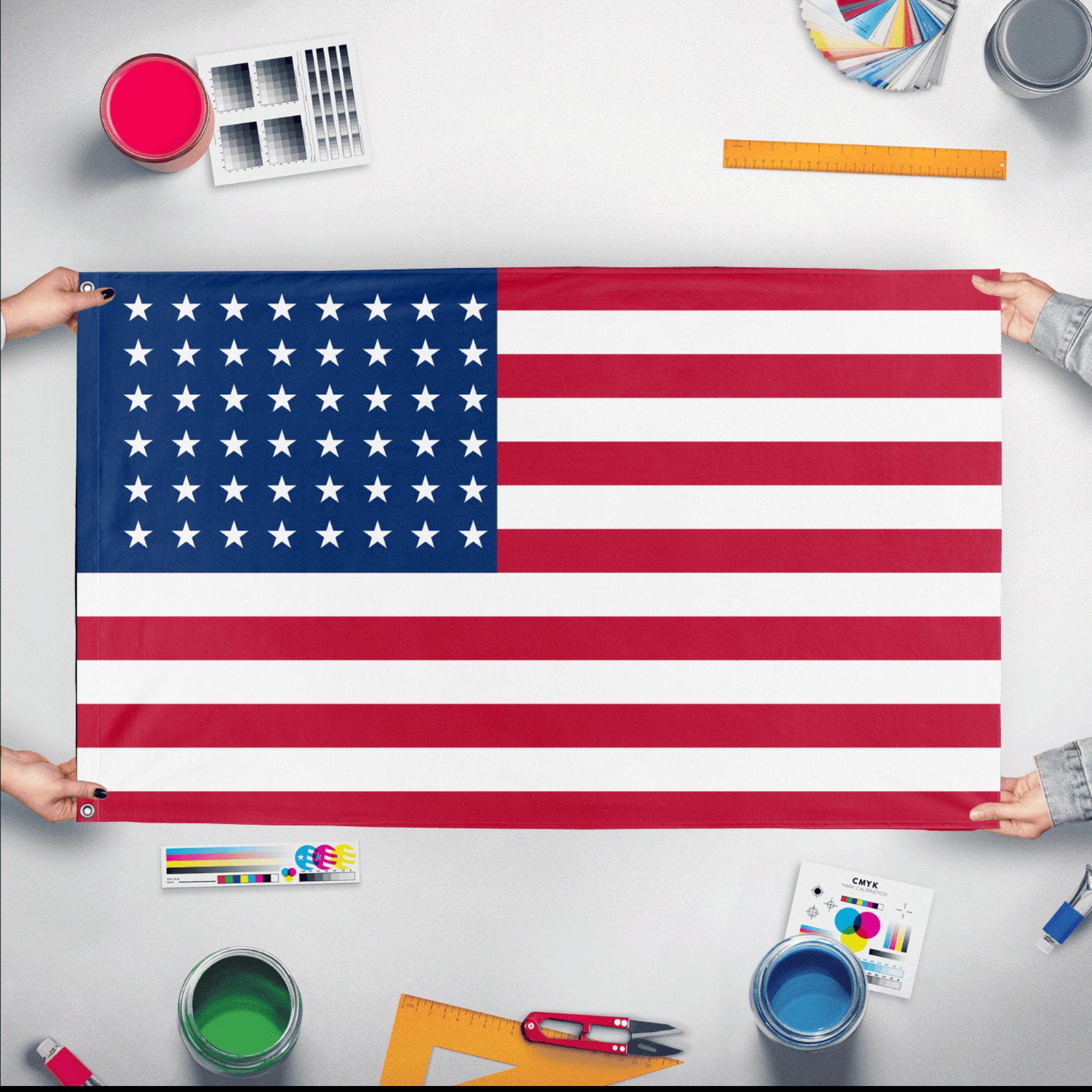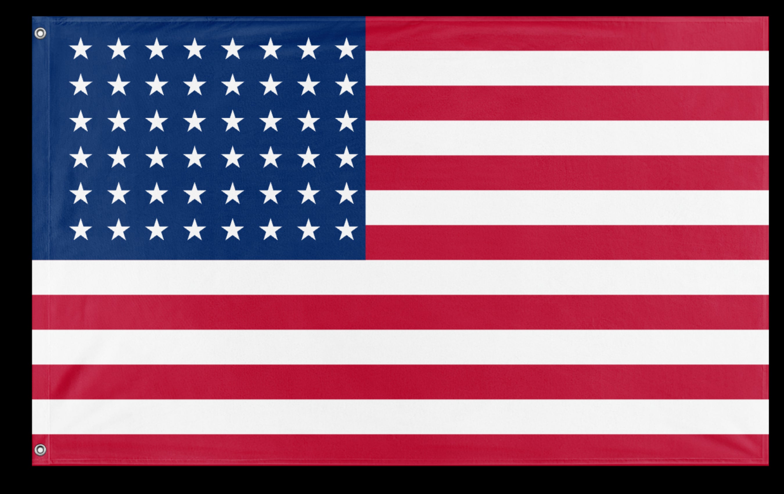 ✒️ The 48-Star Flag was the official flag of the United States from 1912 to 1959, encompassing the period of World War II. It features 48 white stars arranged in six horizontal rows of eight stars each on a blue canton, representing the 48 states of the Union at that time. The flag also includes 13 alternating red and white stripes symbolizing the original thirteen colonies. This flag was flown throughout World War II and became a powerful symbol of American unity, patriotism, and resilience during a critical era in U.S. history.