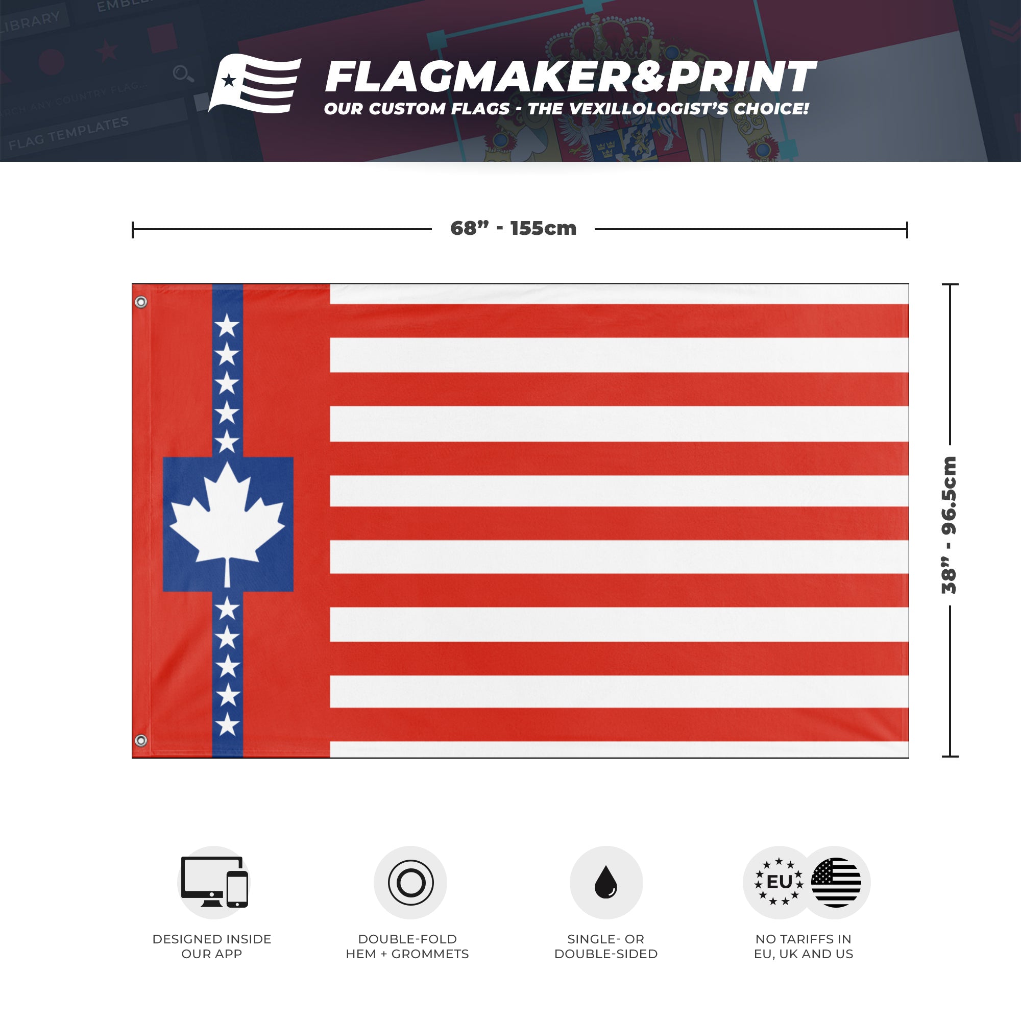📐 Custom Personalized Flag made with Flagmaker & Print. Learn more about our product line-up on the Product Details page. This custom flag design is available as both a one-sided wall flag, or a double-sided display flag