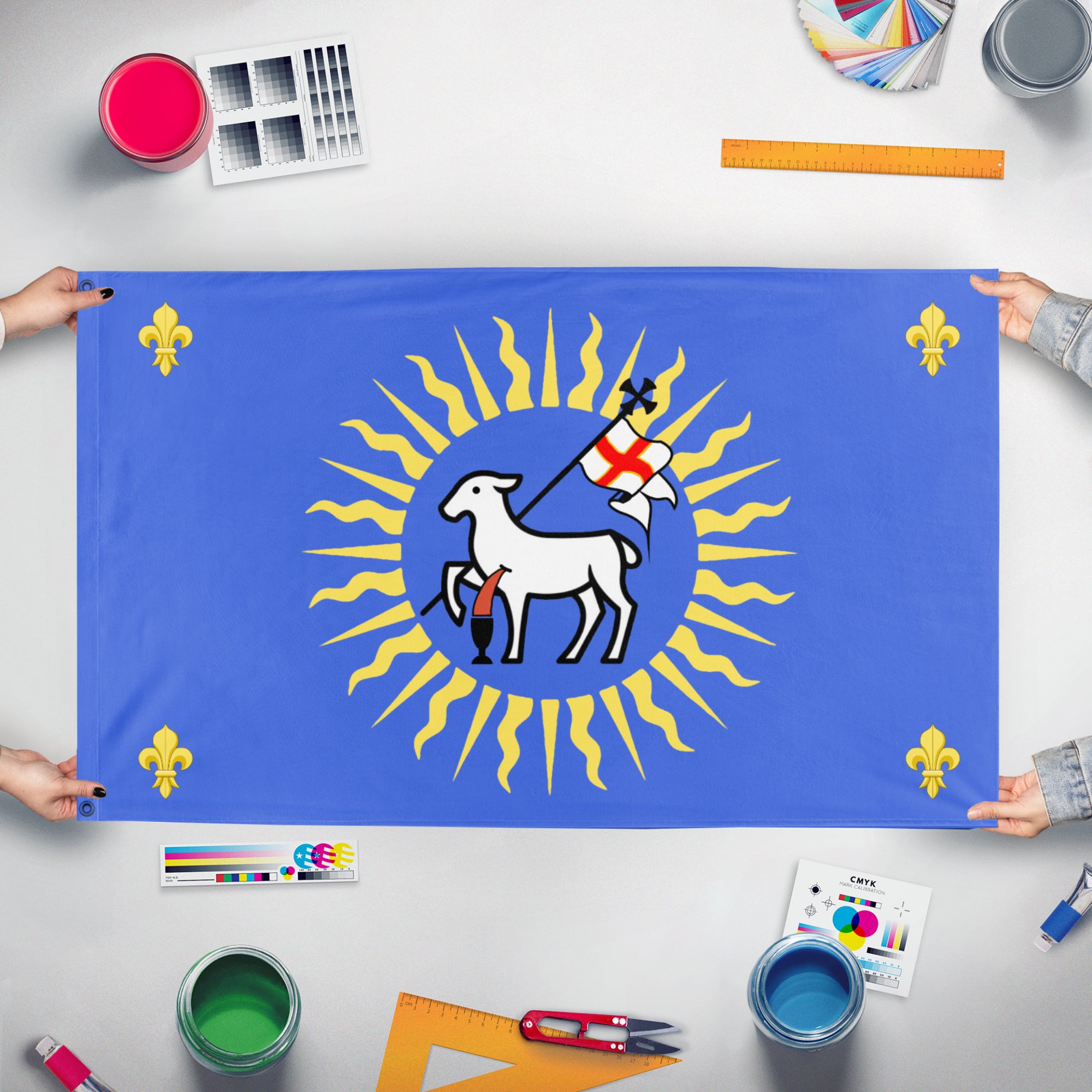 Our integrated flag maker app allows anyone to design and print their own flag. After finishing your design, you can print your flag in three easy steps.