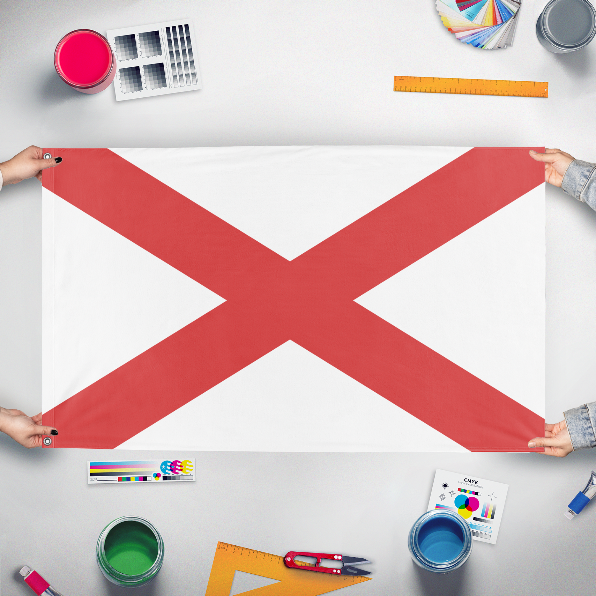 Flagmaker & Print offers best-of-class custom flags in over 32 sizes and variations. Our custom flag print offering ranges from 3x5ft outdoors flags to small desk and hand-waving flags.