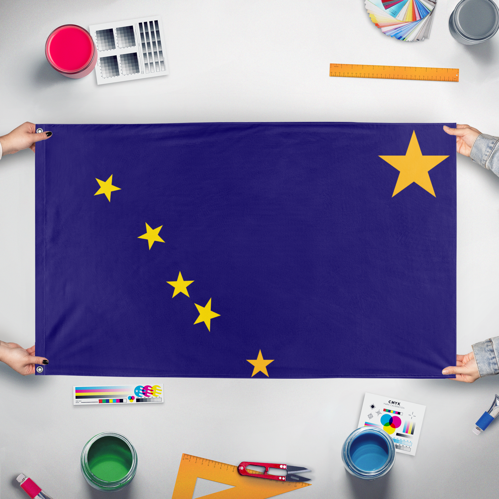 Our integrated flag maker app allows anyone to design and print their own flag. After finishing your design, you can print your flag in three easy steps.