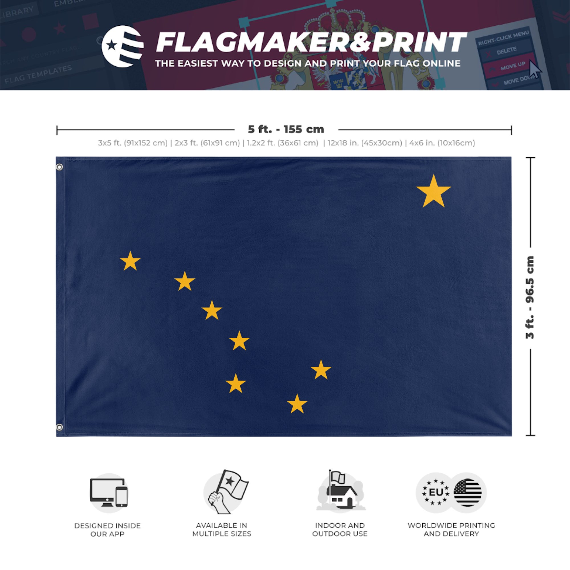 ✒️ The state flag of Alaska features eight gold stars forming the Big Dipper and the North Star on a dark blue field. Designed in 1927 by Benny Benson, a 13-year-old Alaska Native orphan, the flag was originally created for the Territory of Alaska and was retained as the state flag when Alaska achieved statehood in 1959. The Big Dipper symbolizes strength, as it is part of the constellation Ursa Major (the Great Bear), while the North Star represents Alaska's northern location and its future as a state. The blue field stands for the sky, the sea, and the forget-me-not, the territorial flower. Benson’s design was chosen in a contest sponsored by the American Legion, and it remains a source of pride and identity for Alaskans.
