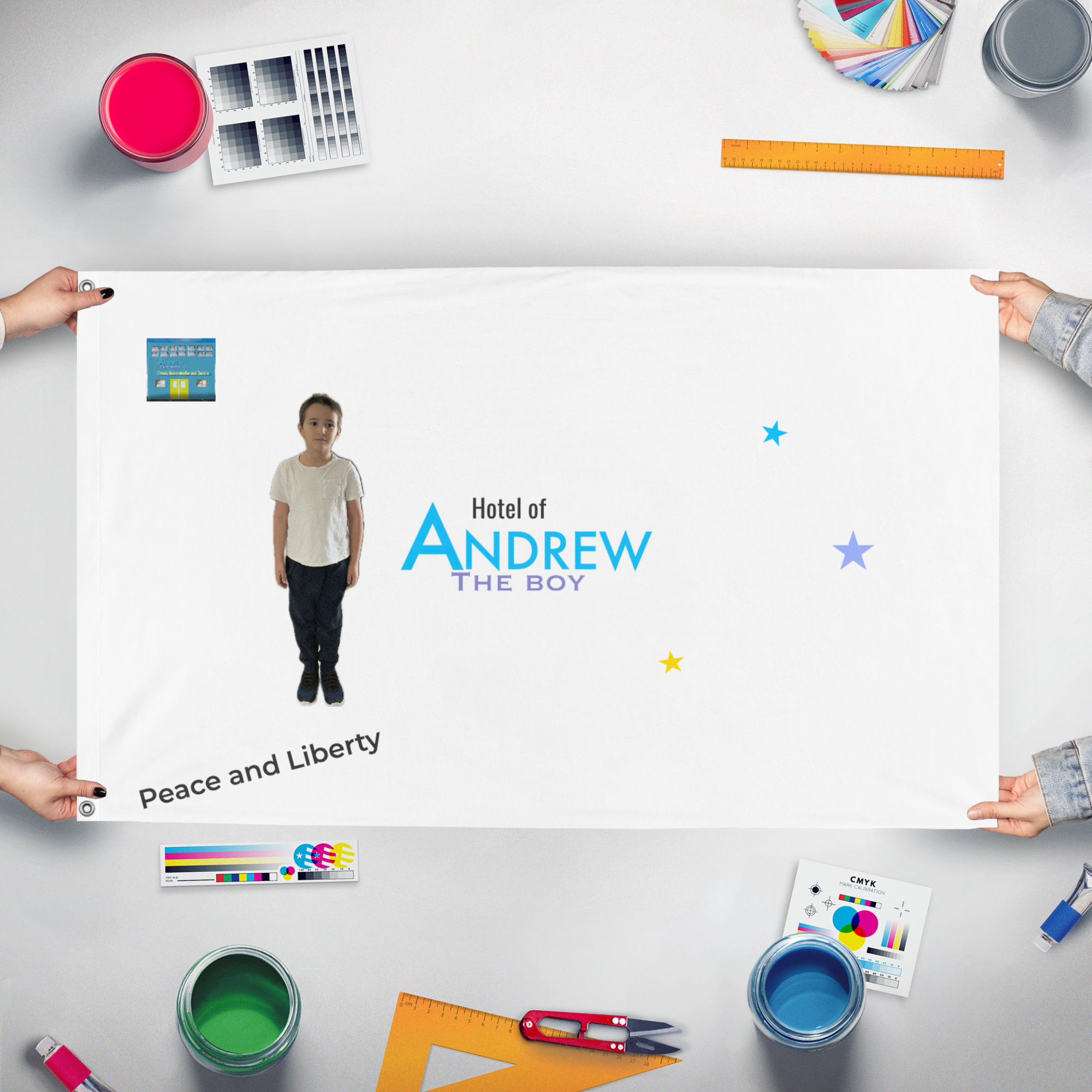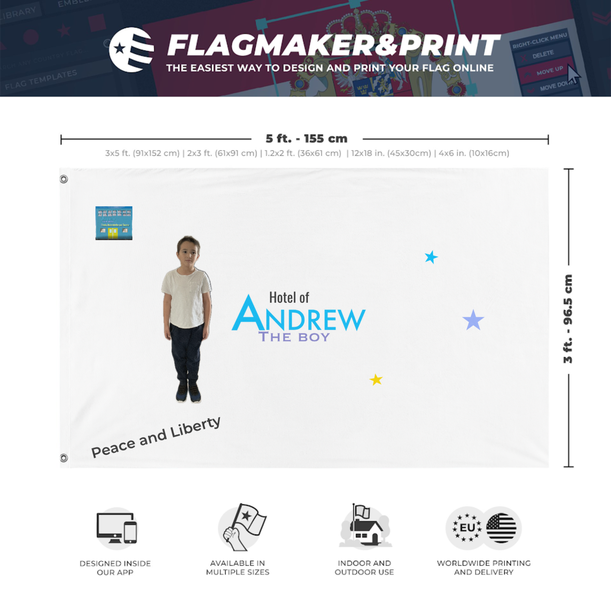 Our integrated flag maker app allows anyone to design and print their own flag. After finishing your design, you can print your flag in three easy steps.