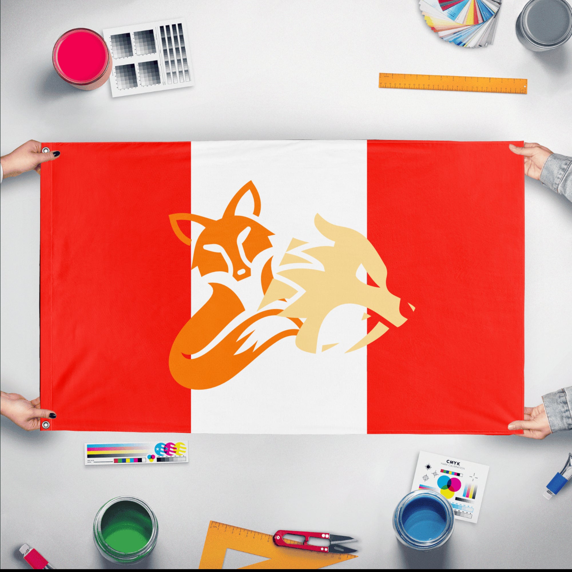 Flagmaker & Print offers best-of-class custom flags in over 32 sizes and variations. Our custom flag print offering ranges from 3x5ft outdoors flags to small desk and hand-waving flags.