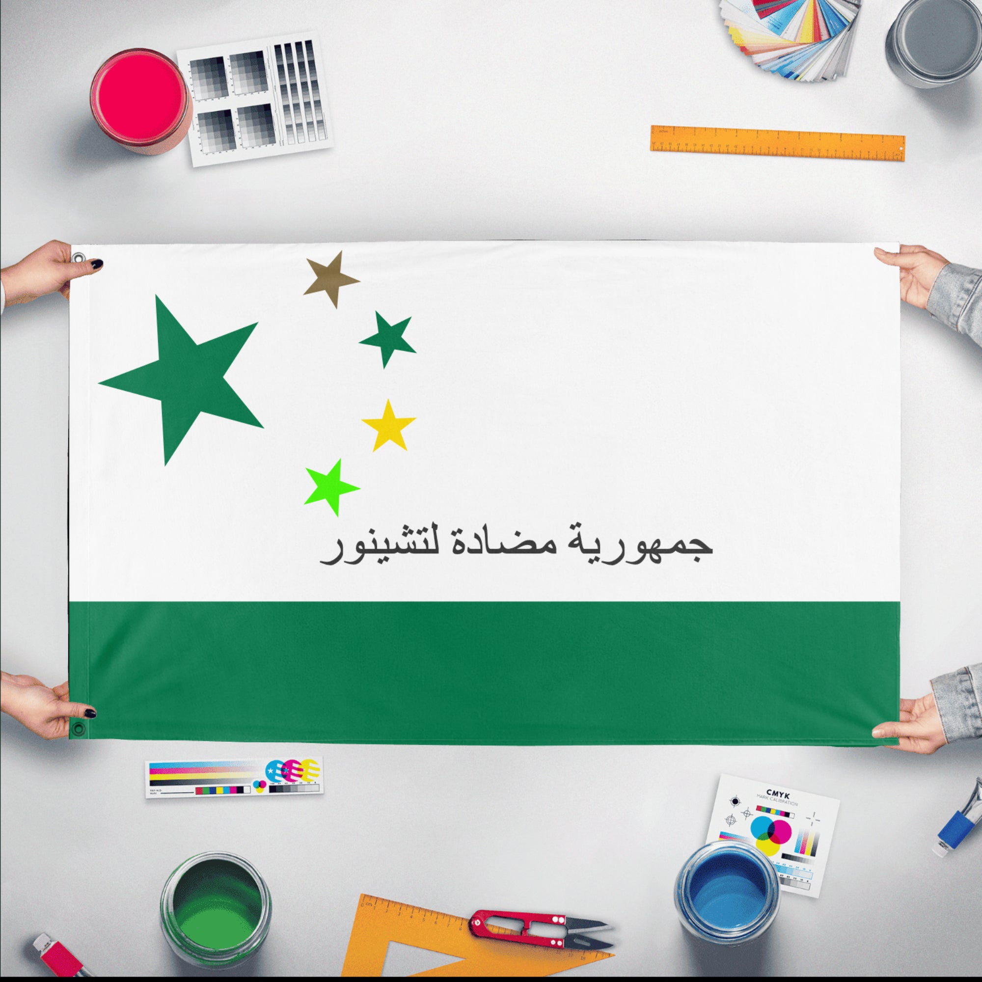 Our integrated flag maker app allows anyone to design and print their own flag. After finishing your design, you can print your flag in three easy steps.