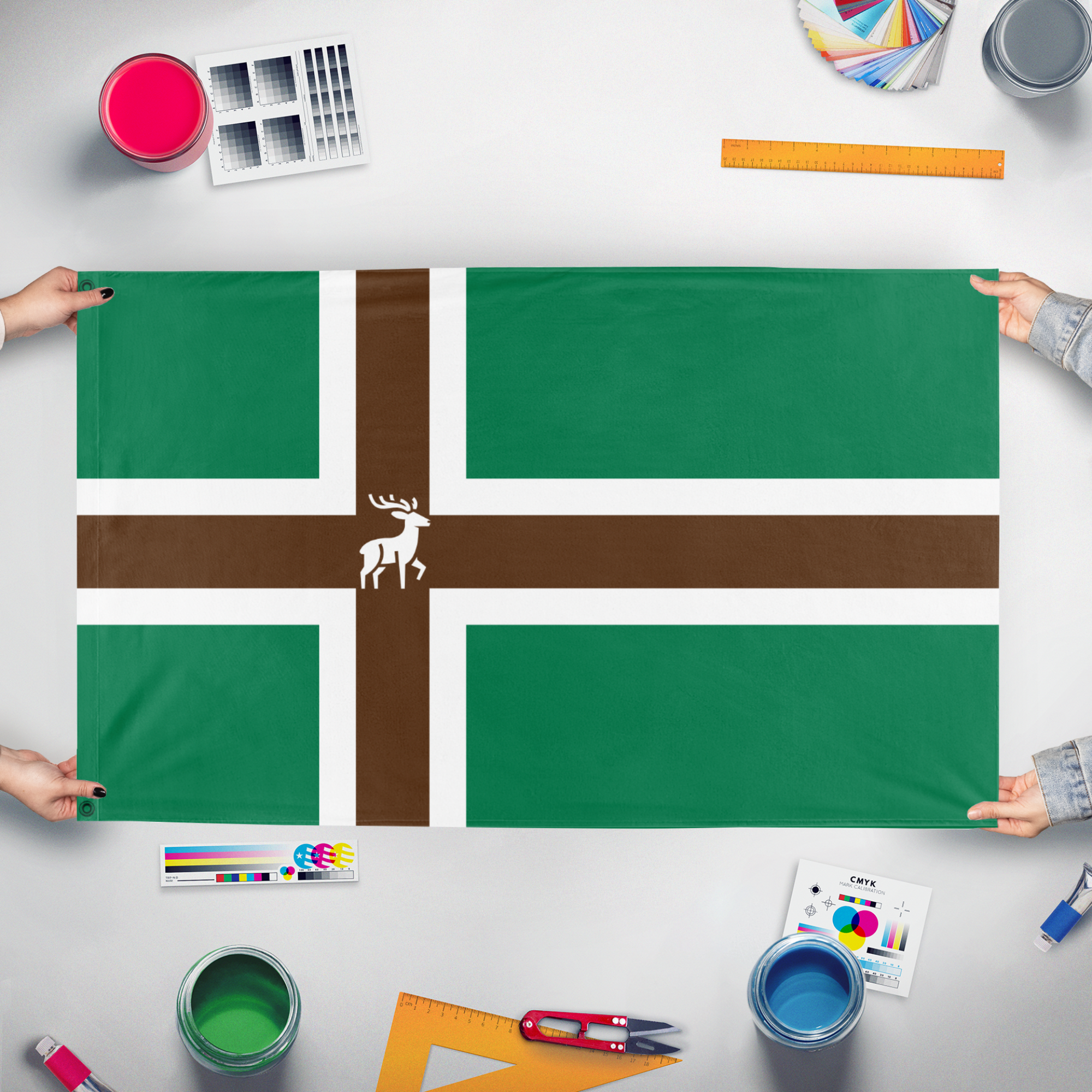 Our integrated flag maker app allows anyone to design and print their own flag. After finishing your design, you can print your flag in three easy steps.