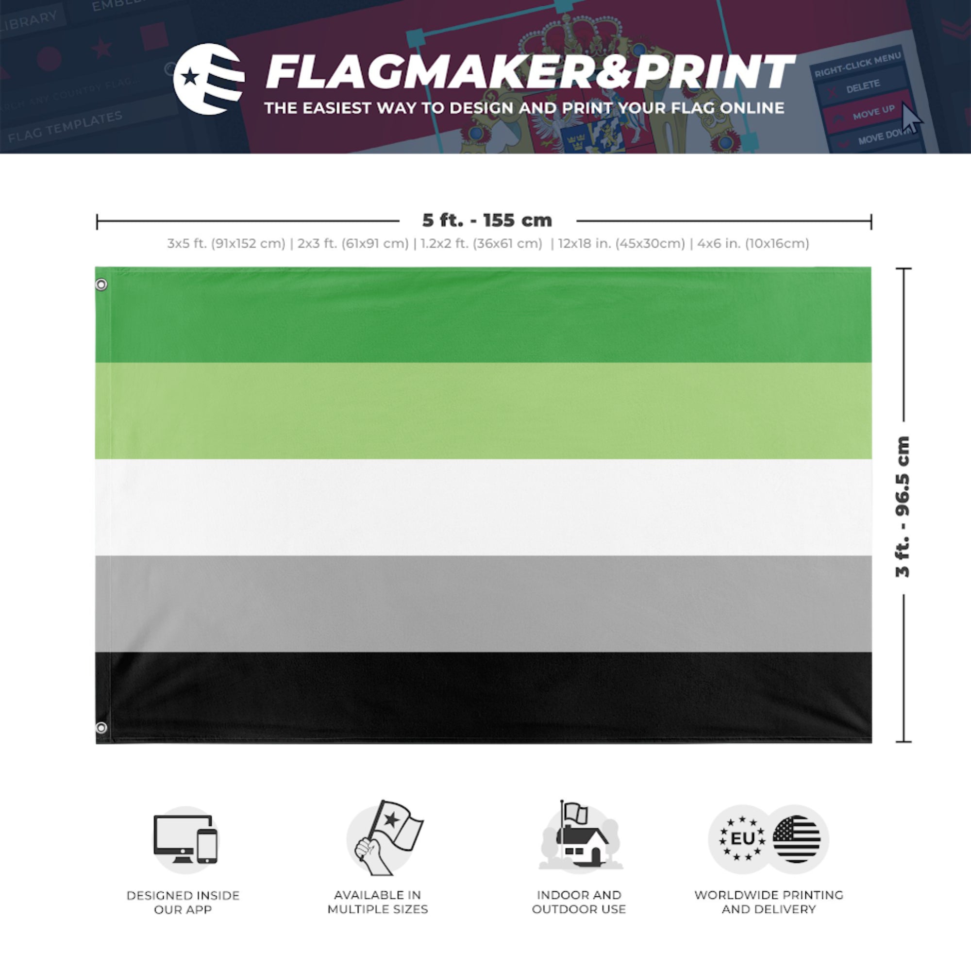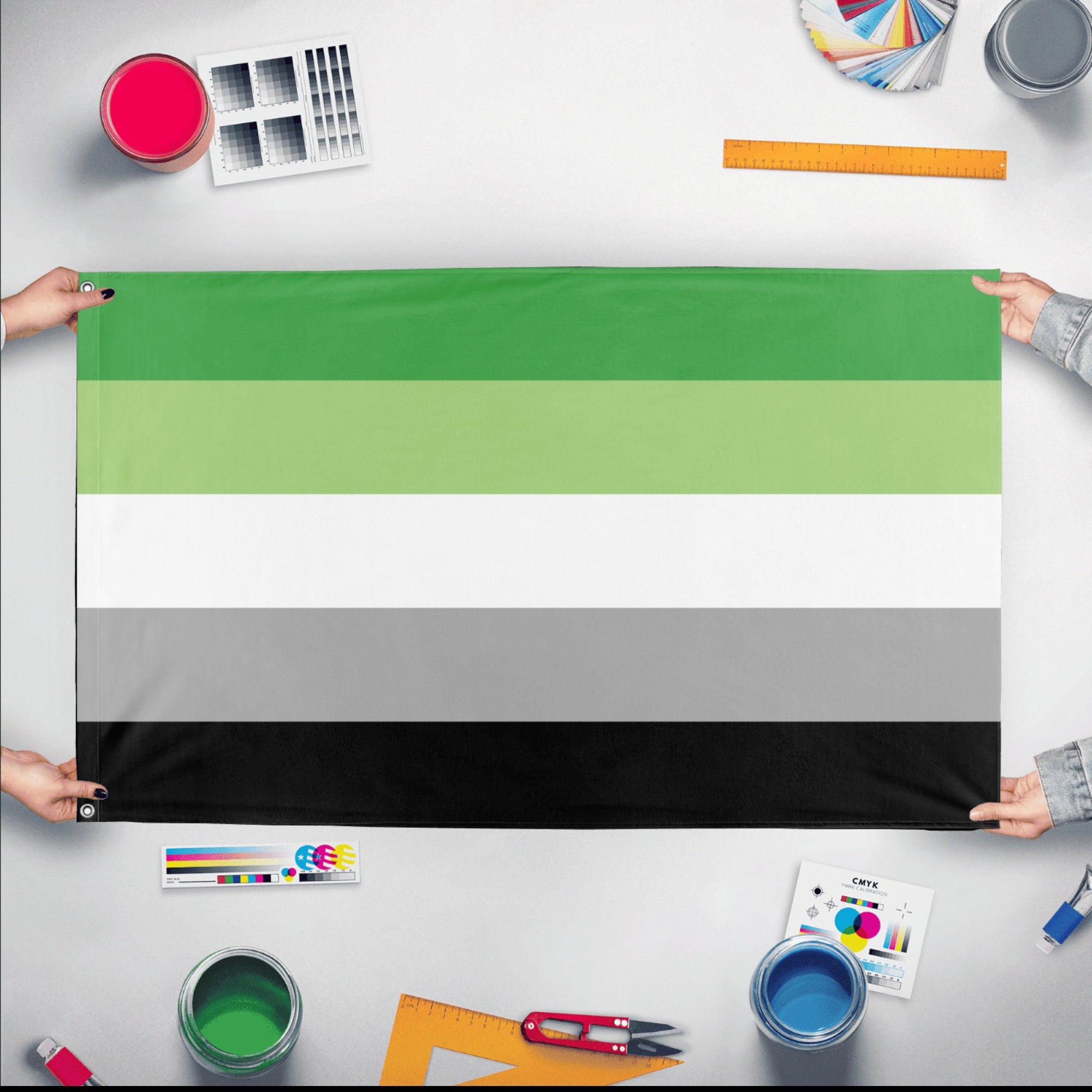 ✒️ The Aromantic Flag, created in 2014 by Kye Rowan, is a symbol of pride for individuals who identify as aromantic, meaning they do not experience romantic attraction. The flag consists of five horizontal stripes: green, light green, white, gray, and black. The green stripes represent the aromantic community, light green symbolizes the spectrum of aromantic identities, white stands for the absence of romantic attraction, gray represents those who experience limited romantic attraction or have gray-area experiences, and black signifies the lack of romantic attraction. The Aromantic Flag is used to raise awareness and visibility for aromantic individuals, fostering a sense of identity and inclusion within the broader LGBTQ+ spectrum.
