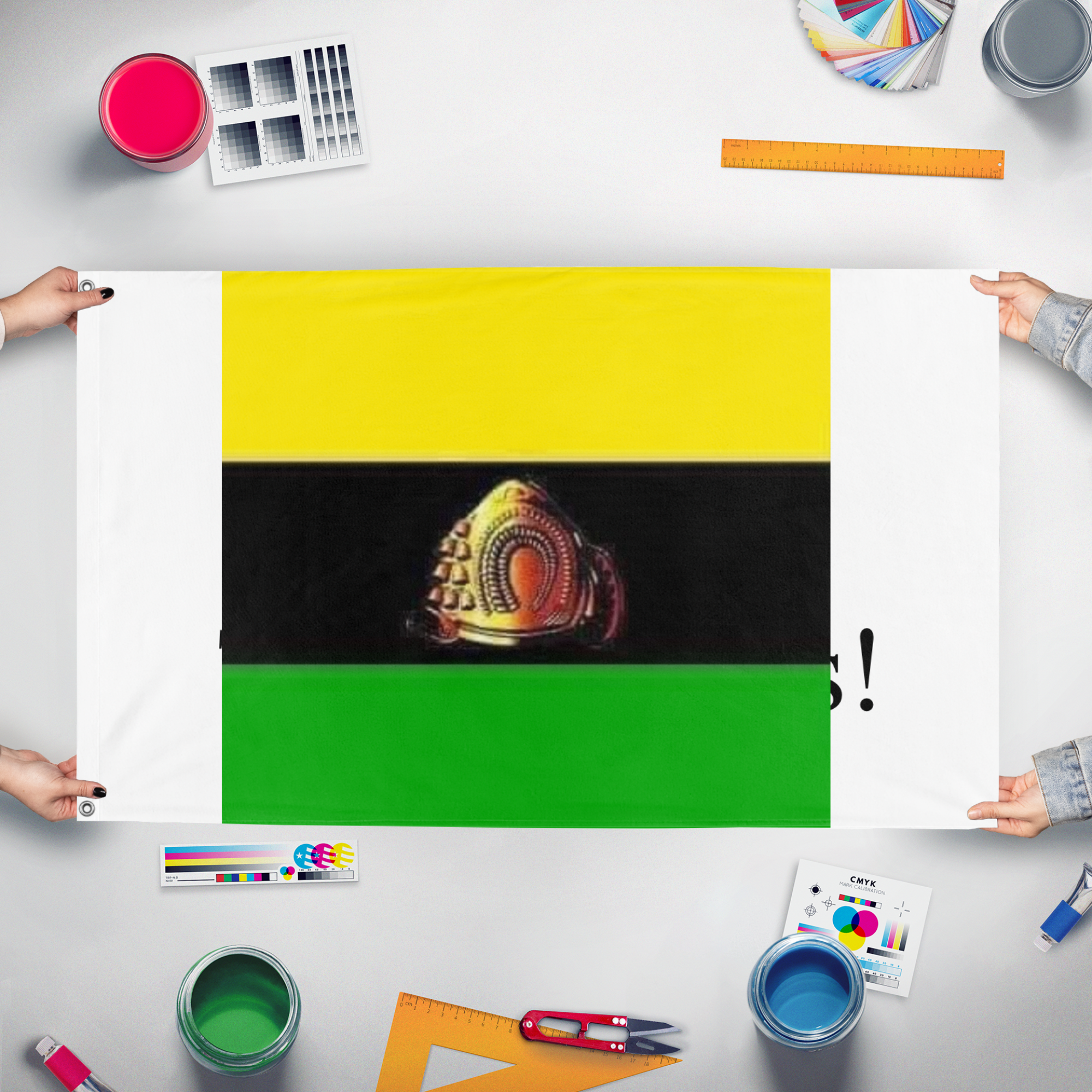 Our integrated flag maker app allows anyone to design and print their own flag. After finishing your design, you can print your flag in three easy steps.