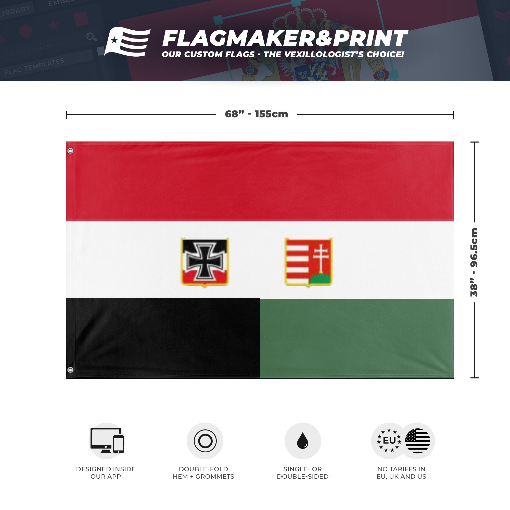 📐 Custom Personalized Flag made with Flagmaker & Print. Learn more about our product line-up on the Product Details page. This custom flag design is available as both a one-sided wall flag, or a double-sided display flag