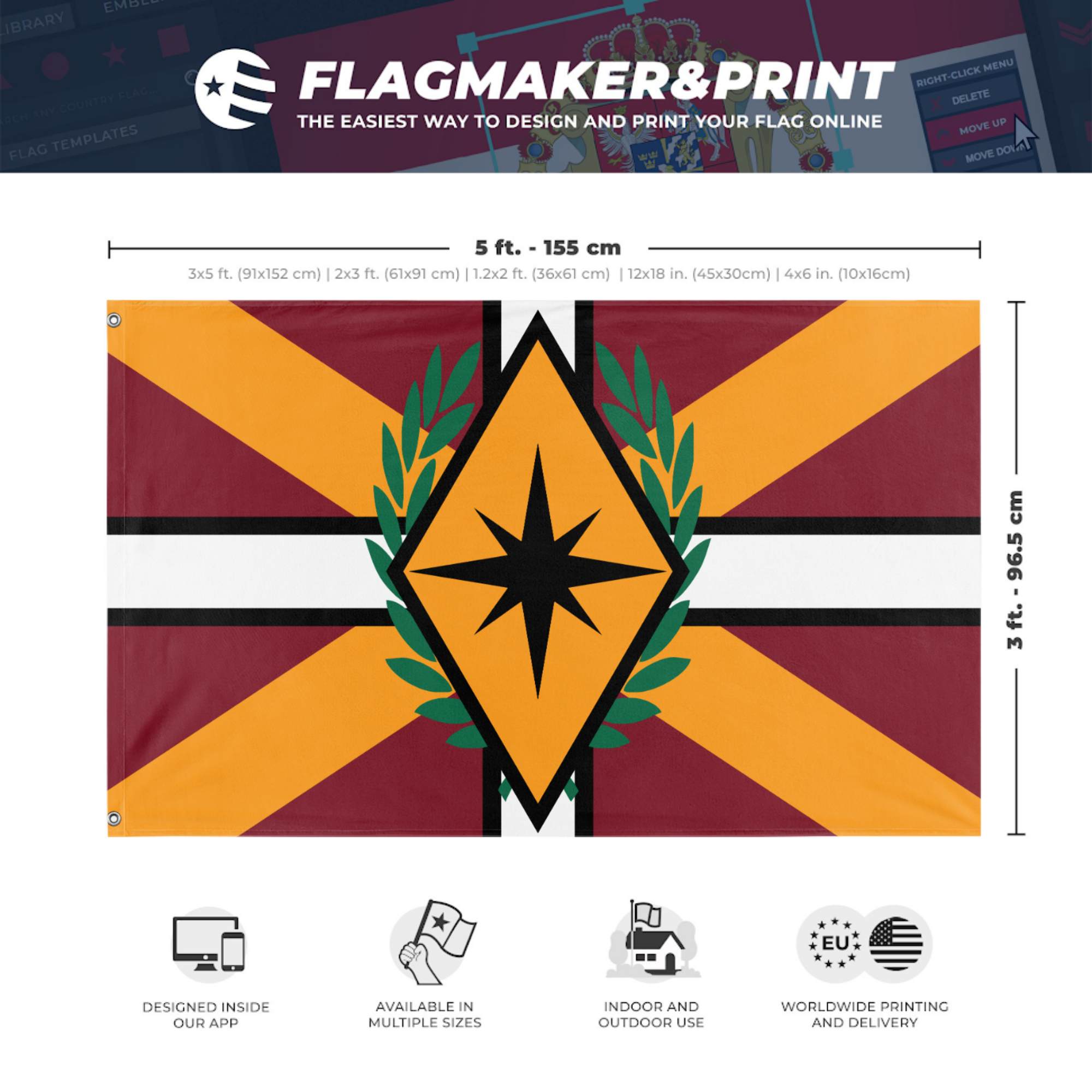 📐 Custom Personalized Flag made with Flagmaker & Print. Learn more about our product line-up on the Product Details page. This custom flag design is available as both a one-sided wall flag, or a double-sided display flag