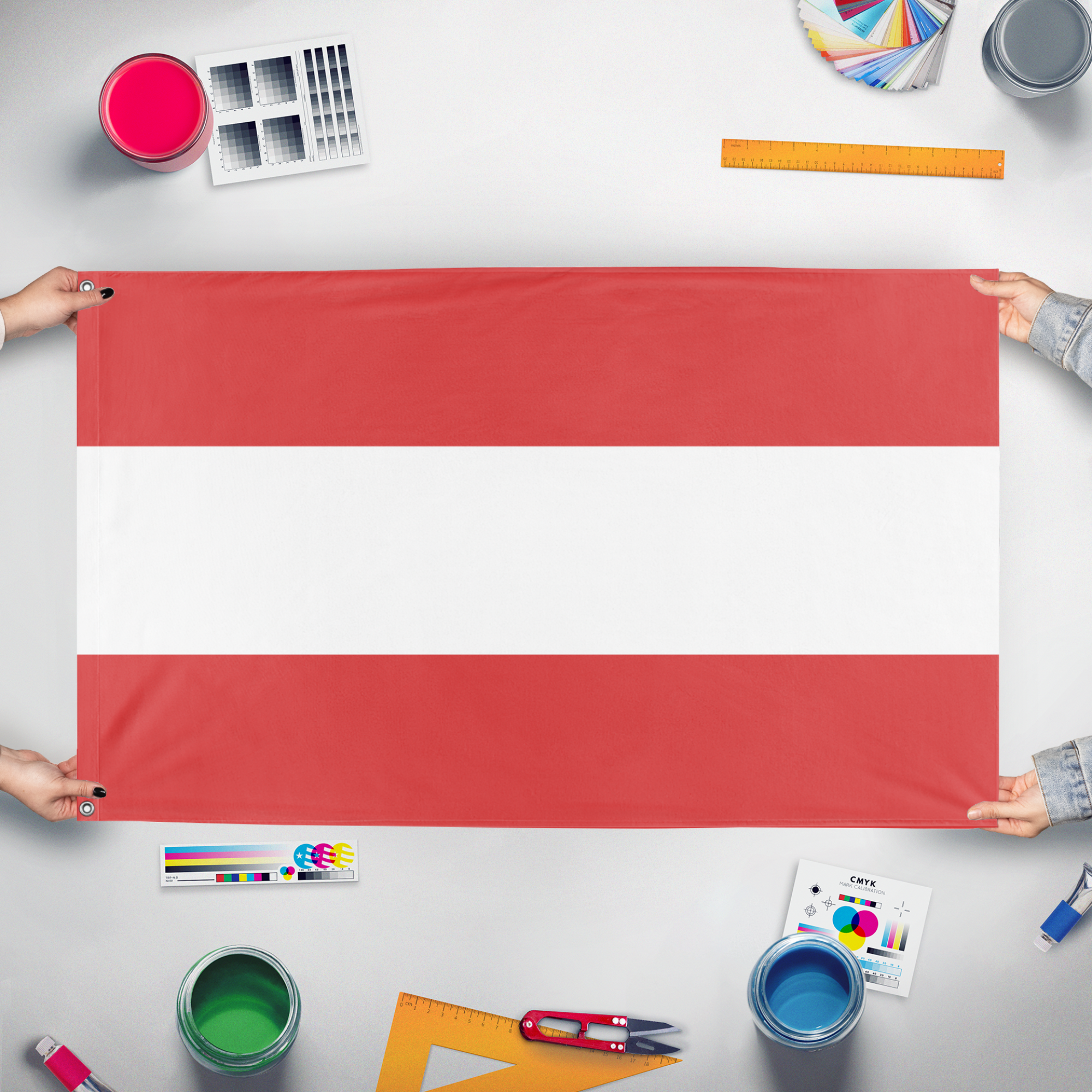 Our integrated flag maker app allows anyone to design and print their own flag. After finishing your design, you can print your flag in three easy steps.