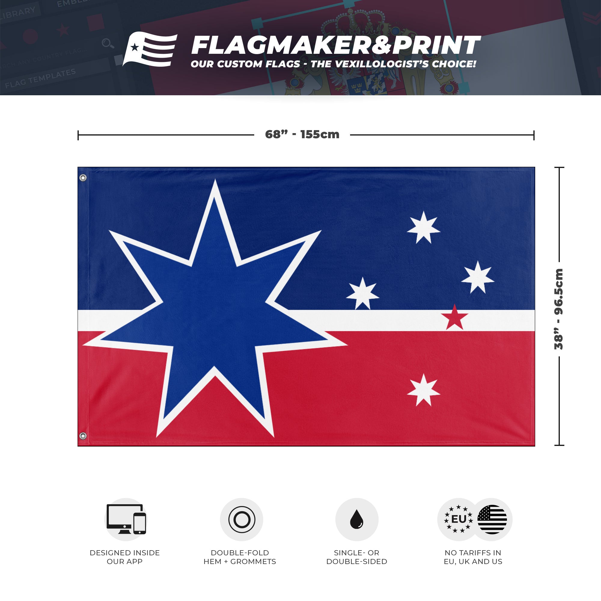 📐 Custom Personalized Flag made with Flagmaker & Print. Learn more about our product line-up on the Product Details page. This custom flag design is available as both a one-sided wall flag, or a double-sided display flag