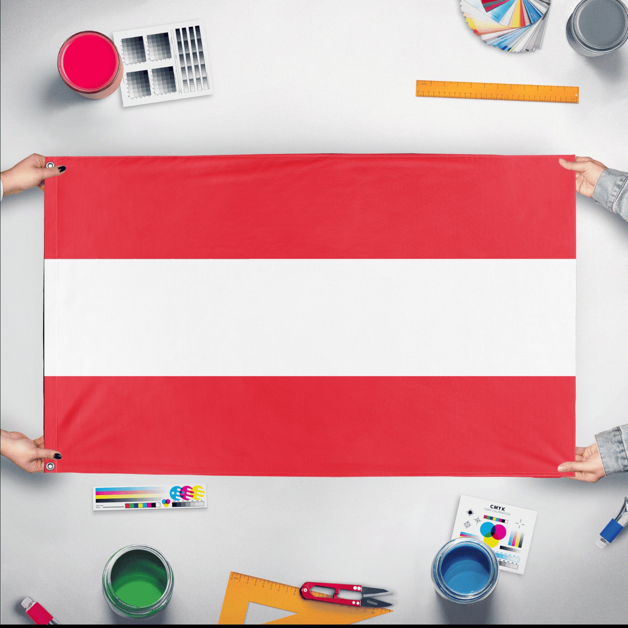 Flagmaker & Print offers best-of-class custom flags in over 32 sizes and variations. Our custom flag print offering ranges from 3x5ft outdoors flags to small desk and hand-waving flags.