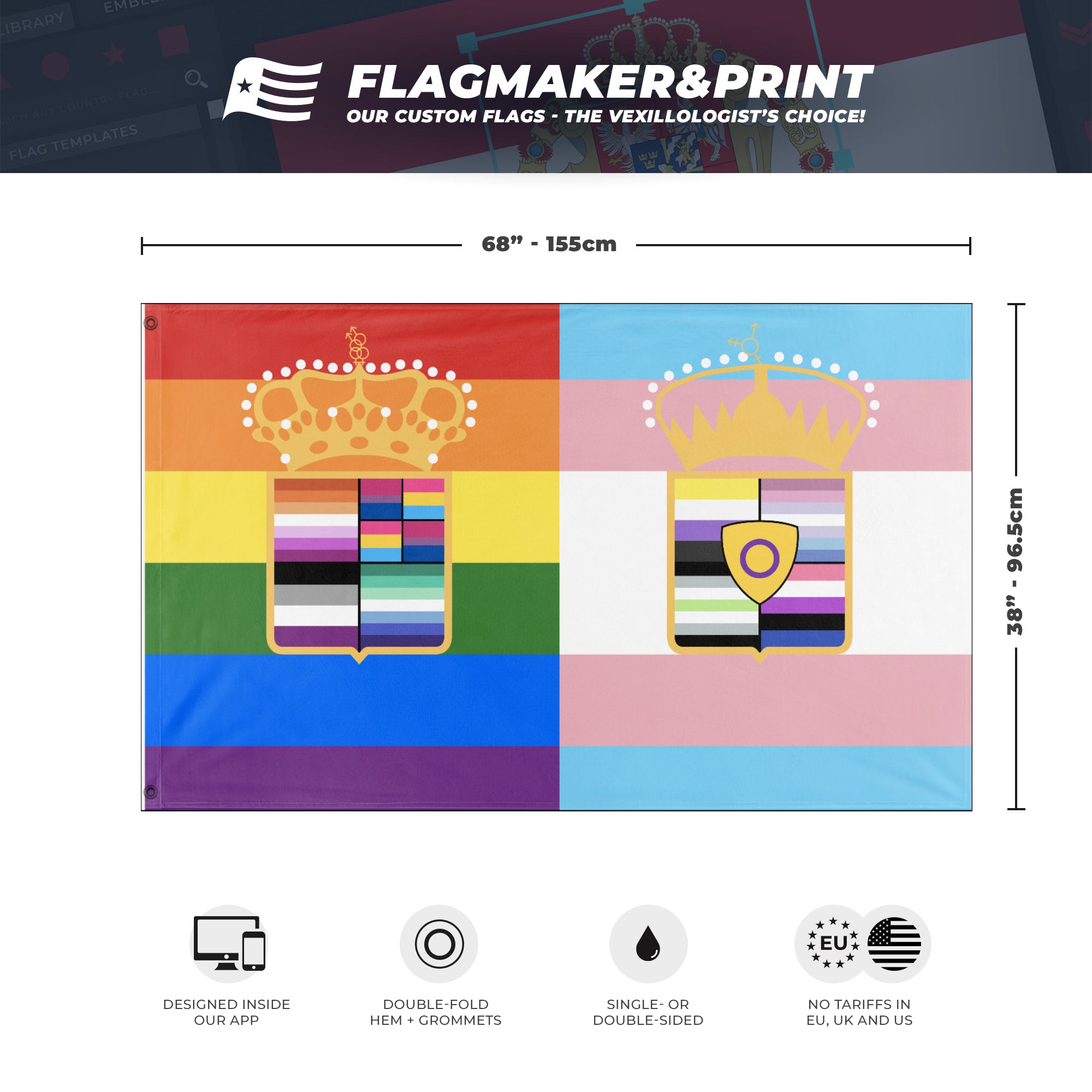 📐 Custom Personalized Flag made with Flagmaker & Print. Learn more about our product line-up on the Product Details page. This custom flag design is available as both a one-sided wall flag, or a double-sided display flag