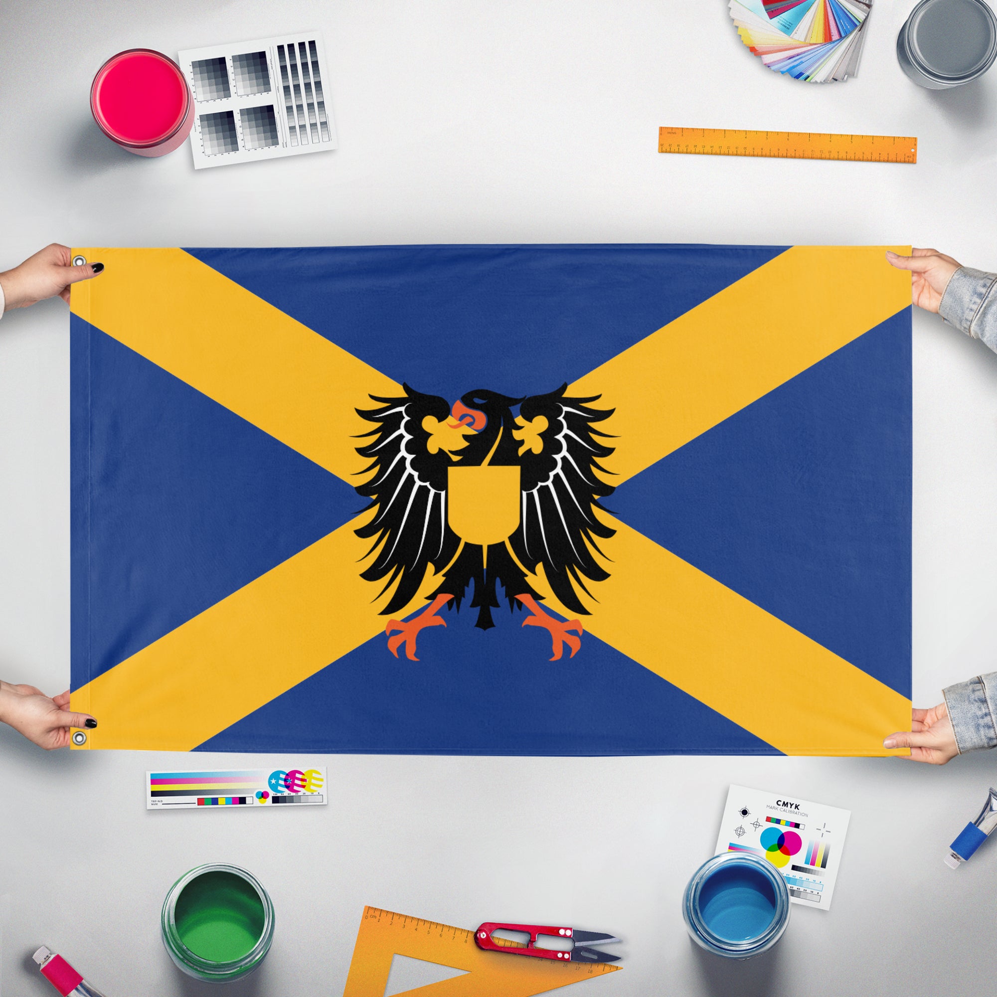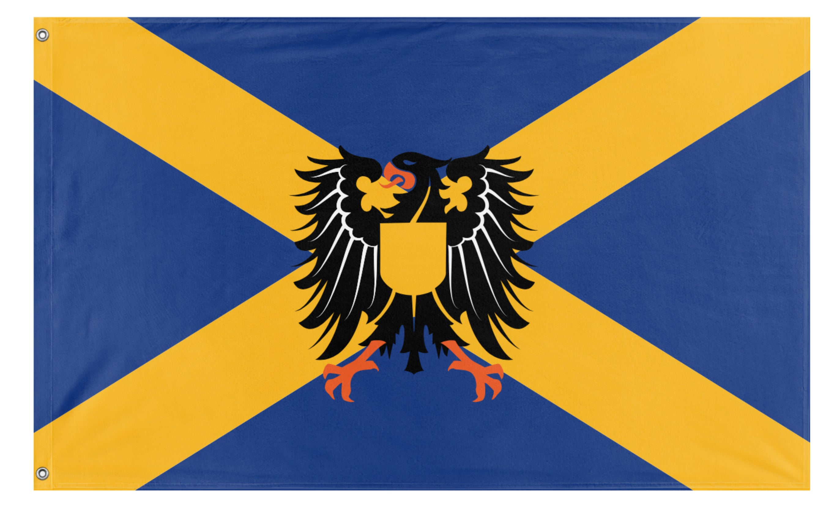 ✒️ Flag: Saltire: 1: Blue. 2: Yellow + Eagle Simple. Name: Base-Cubed