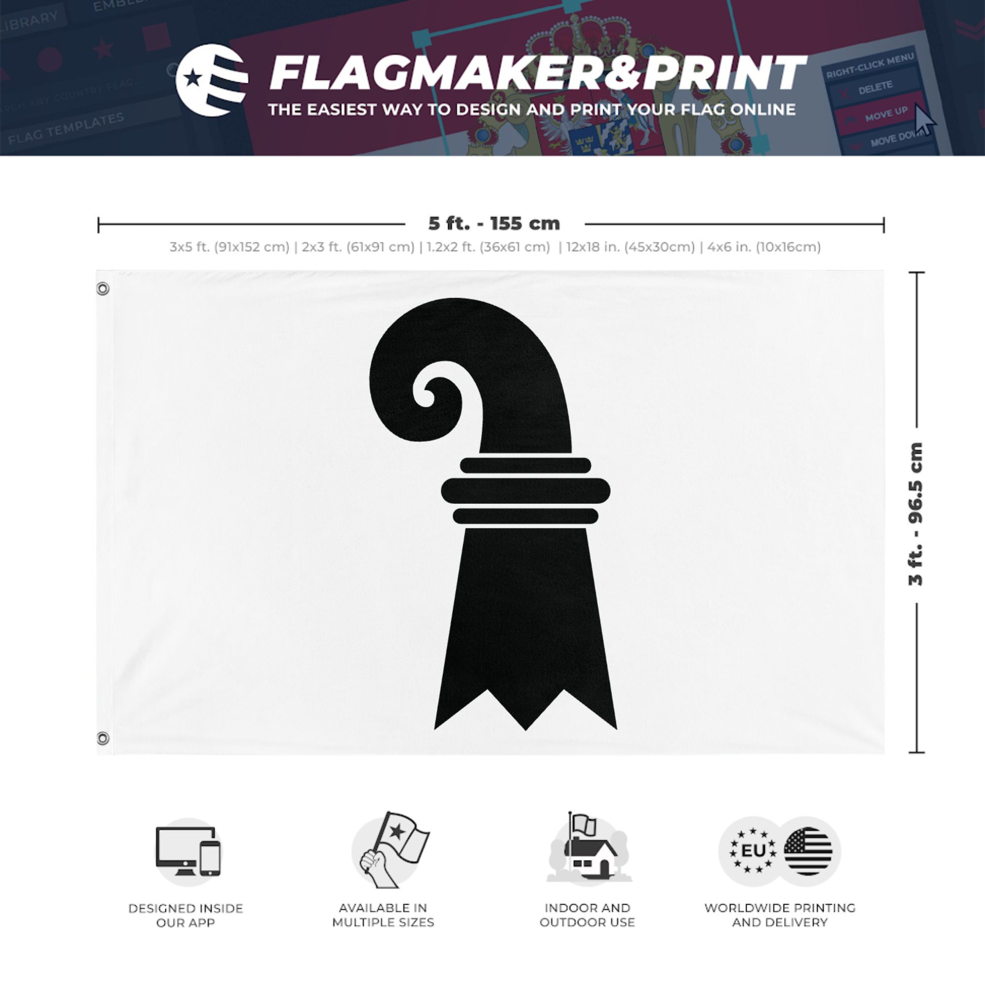 ✒️ The flag of Basel-Stadt, one of the 26 cantons of Switzerland, features a white field bearing a black crosier (bishop’s staff) with a distinctive curled top. This heraldic emblem, known as the Basel crosier, symbolizes the city's historical status as an ecclesiastical center and reflects its medieval association with the Prince-Bishopric of Basel. The black crosier on white contrasts with the inverted colors of Basel-Landschaft, highlighting the political and historical separation between the two cantons. The flag remains a strong symbol of Basel-Stadt’s identity, blending religious heritage with civic tradition.