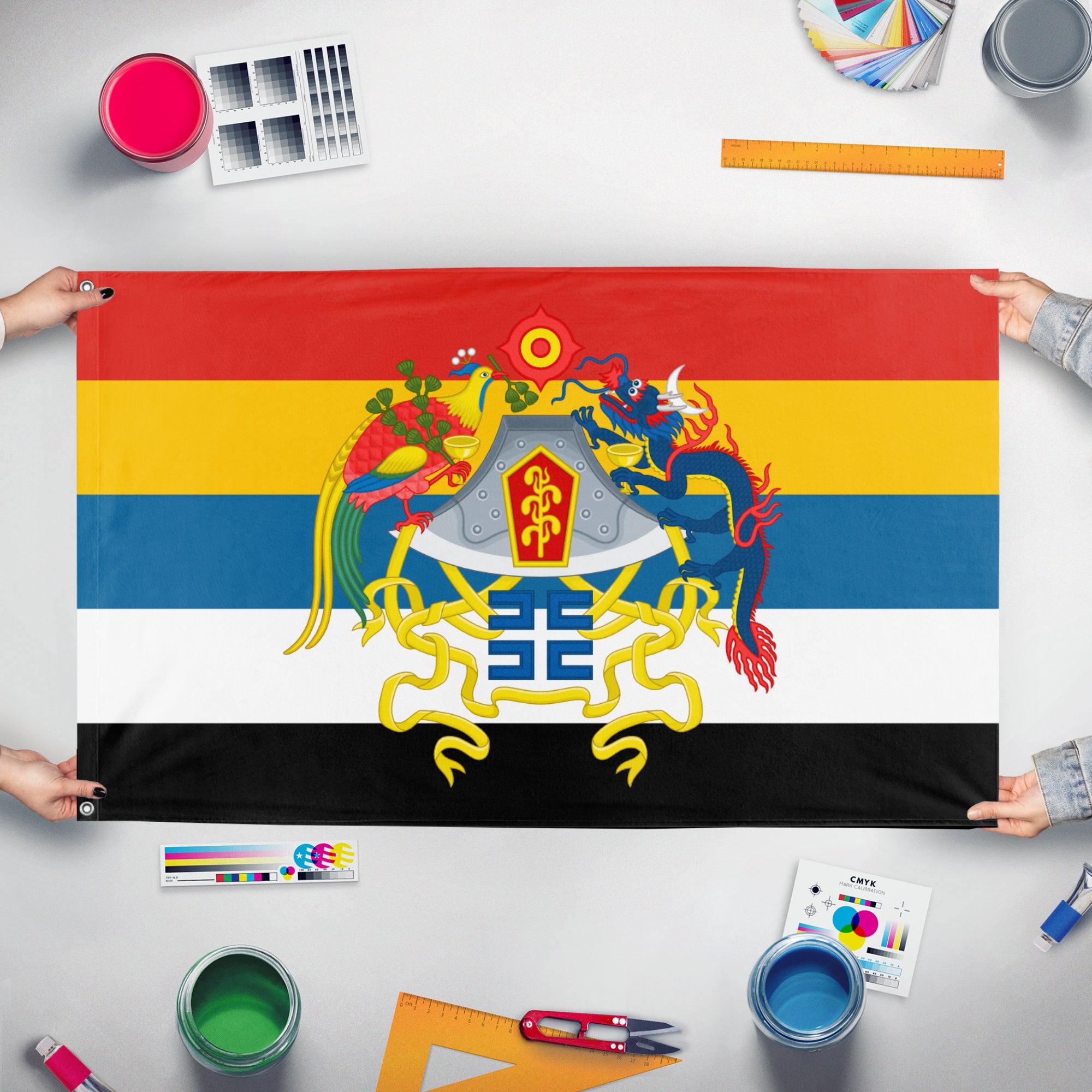 This flag is a prominent example of a trend within the online vexillology and alt-history communities that reinterprets historical symbols to create inclusive emblems. This pattern was first popularized by the "Austria-Hungary Pride Flag," associated with an anonymous r/vexillology user known as The MayoMan. The Qing Empire Pride Flag itself was subsequently developed by Kaiser Cat Collective artist Vincent De Nil. Its creation was part of the development process for the popular "Kaiserreich Documentary" series, specifically in connection with episodes focusing on the alt-history fate of China. Such flags are part of a broader "Pride Alt-History" movement, which aims to make the community and its fictional world-building projects more inclusive for all members.