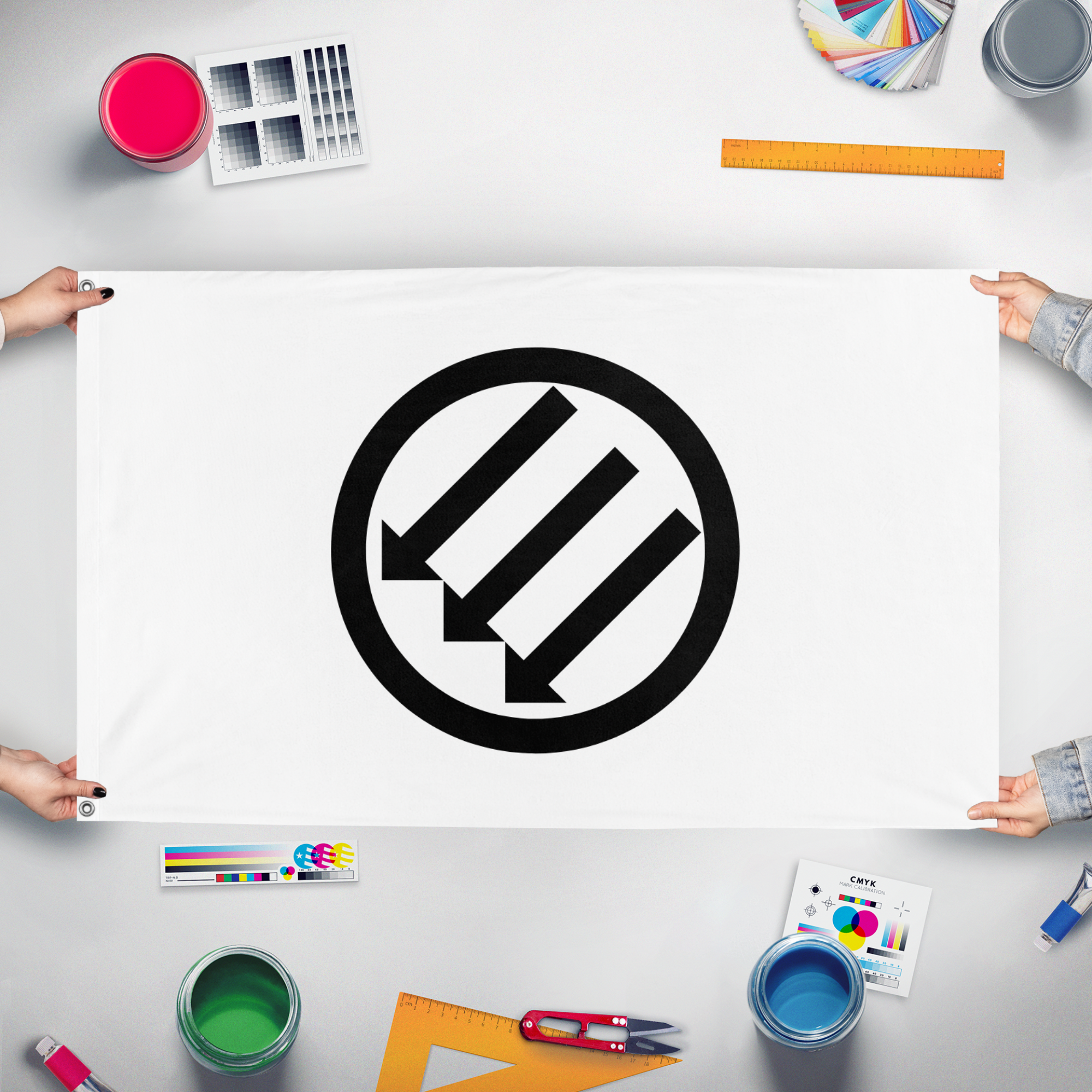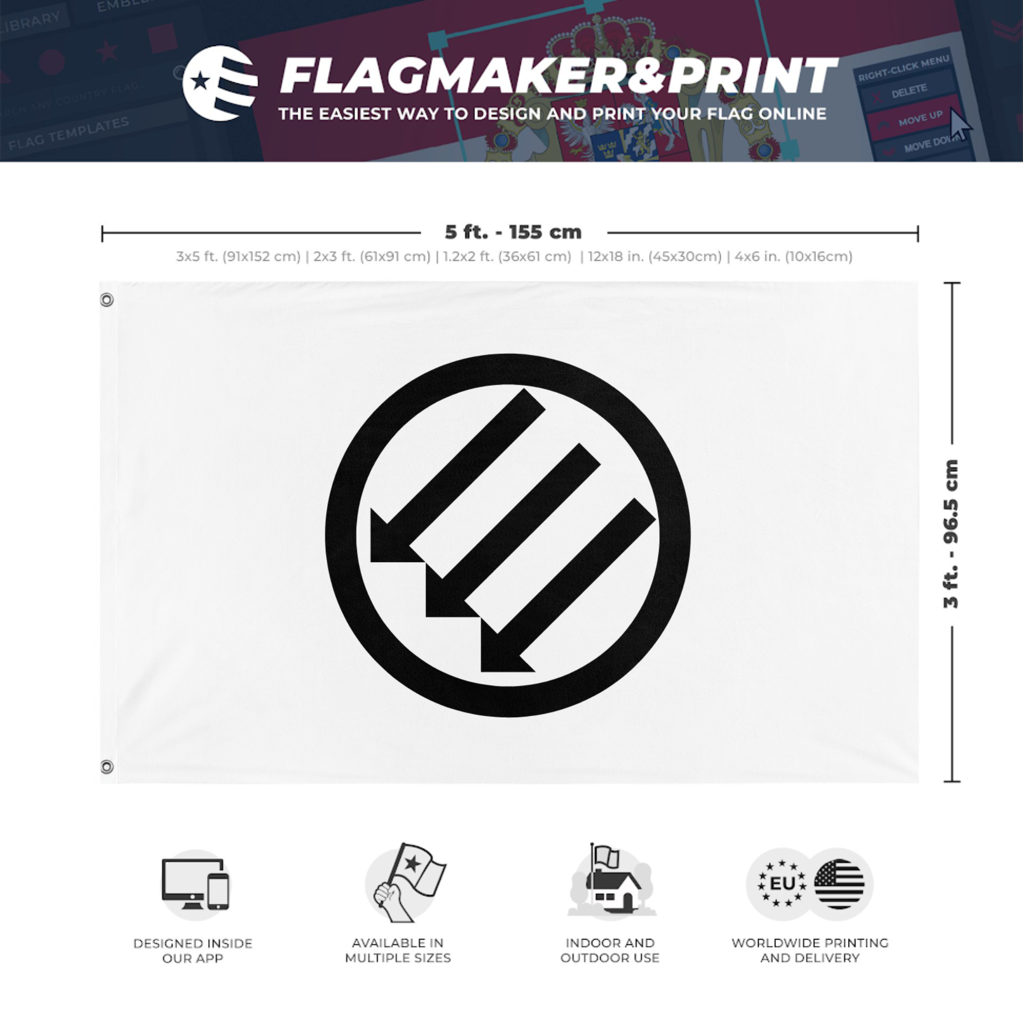 Our integrated flag maker app allows anyone to design and print their own flag. After finishing your design, you can print your flag in three easy steps.