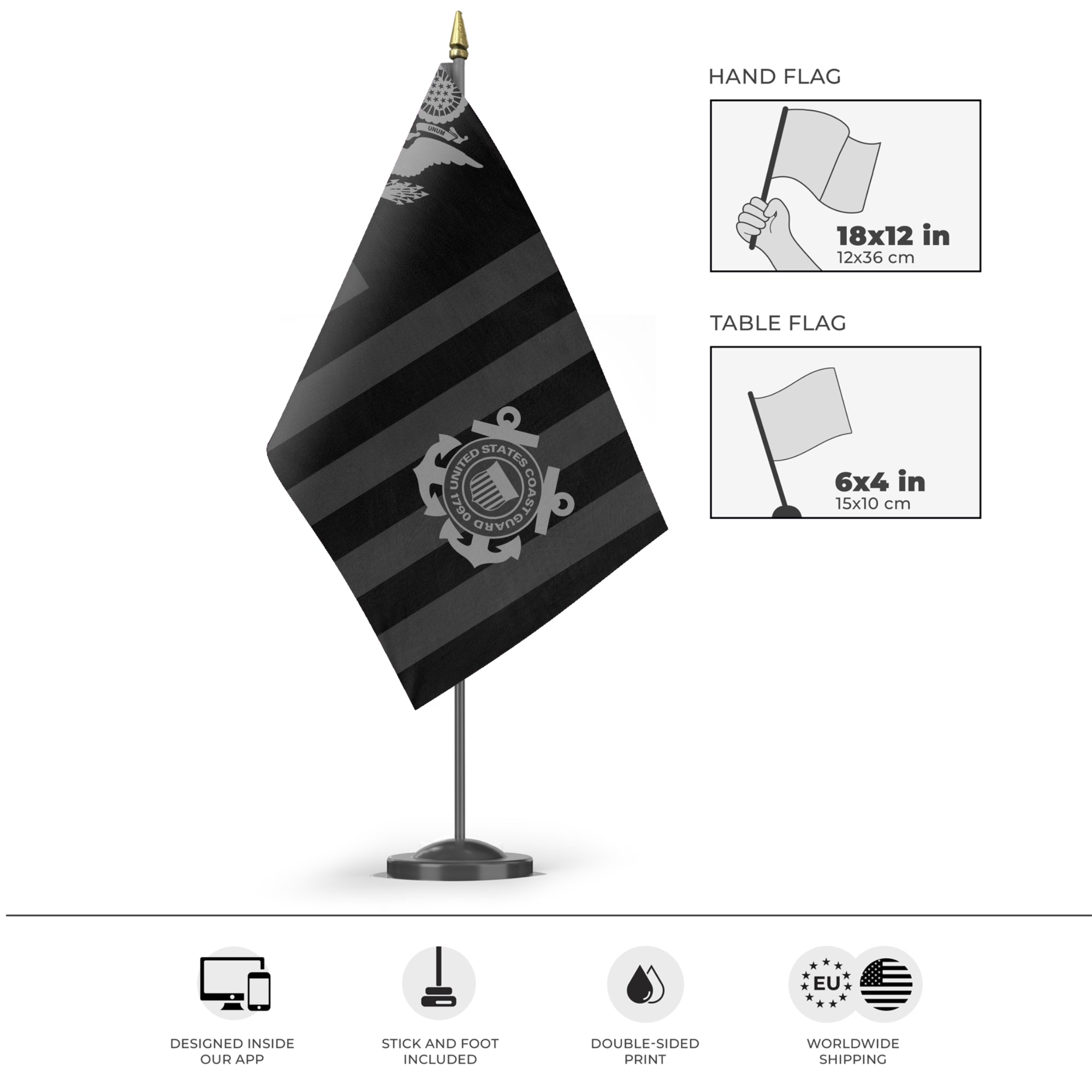 ✒️ A black variant of the US Coast Guard Flag, requested by an FMP user and designed by our graphic design team. Looking to have a custom flag made by one of our designers? At FMP, custom requests are completely free of charge and included in the price of your flag. Take a look at our 'Let Us Design Your Flag' service. You can find the order page here: https://flagmaker-print.com/products/have-us-design-your-flag