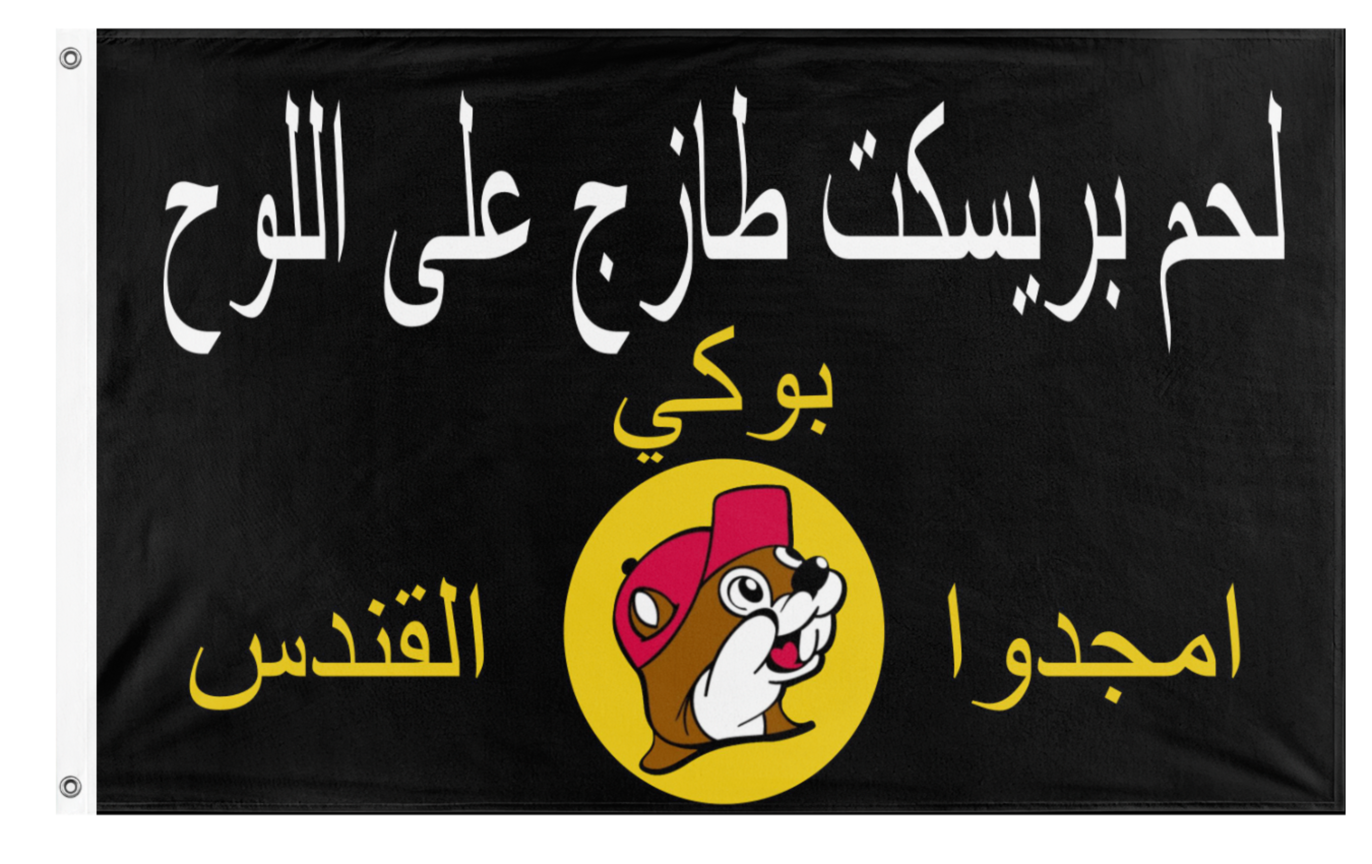 Translation: Fresh brisket on the board, praise the beaver, Bucee