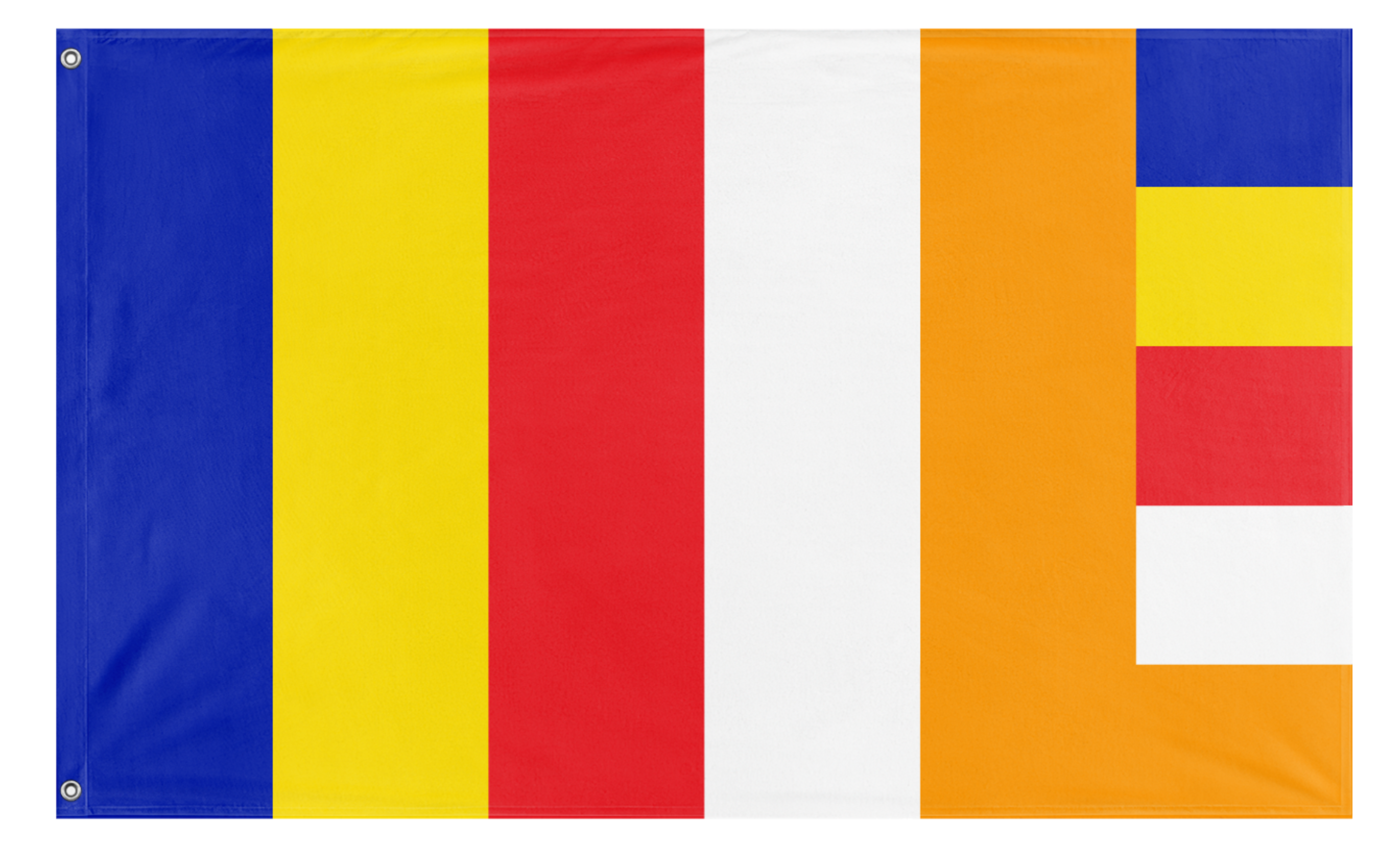 ✒️ The Buddhist Flag is a modern symbol of faith and unity among Buddhists worldwide, first designed in Sri Lanka in 1885 and officially adopted by the World Fellowship of Buddhists in 1952. The flag features six vertical bands: blue, yellow, red, white, and orange, followed by a sixth band comprising a combination of the first five colors, representing the aura said to have radiated from the Buddha after his enlightenment. Each color symbolizes a specific virtue or aspect of Buddhist teachings, such as wisdom, compassion, and purity. The flag is widely displayed during Vesak and other religious observances, serving as a unifying emblem across diverse Buddhist traditions.