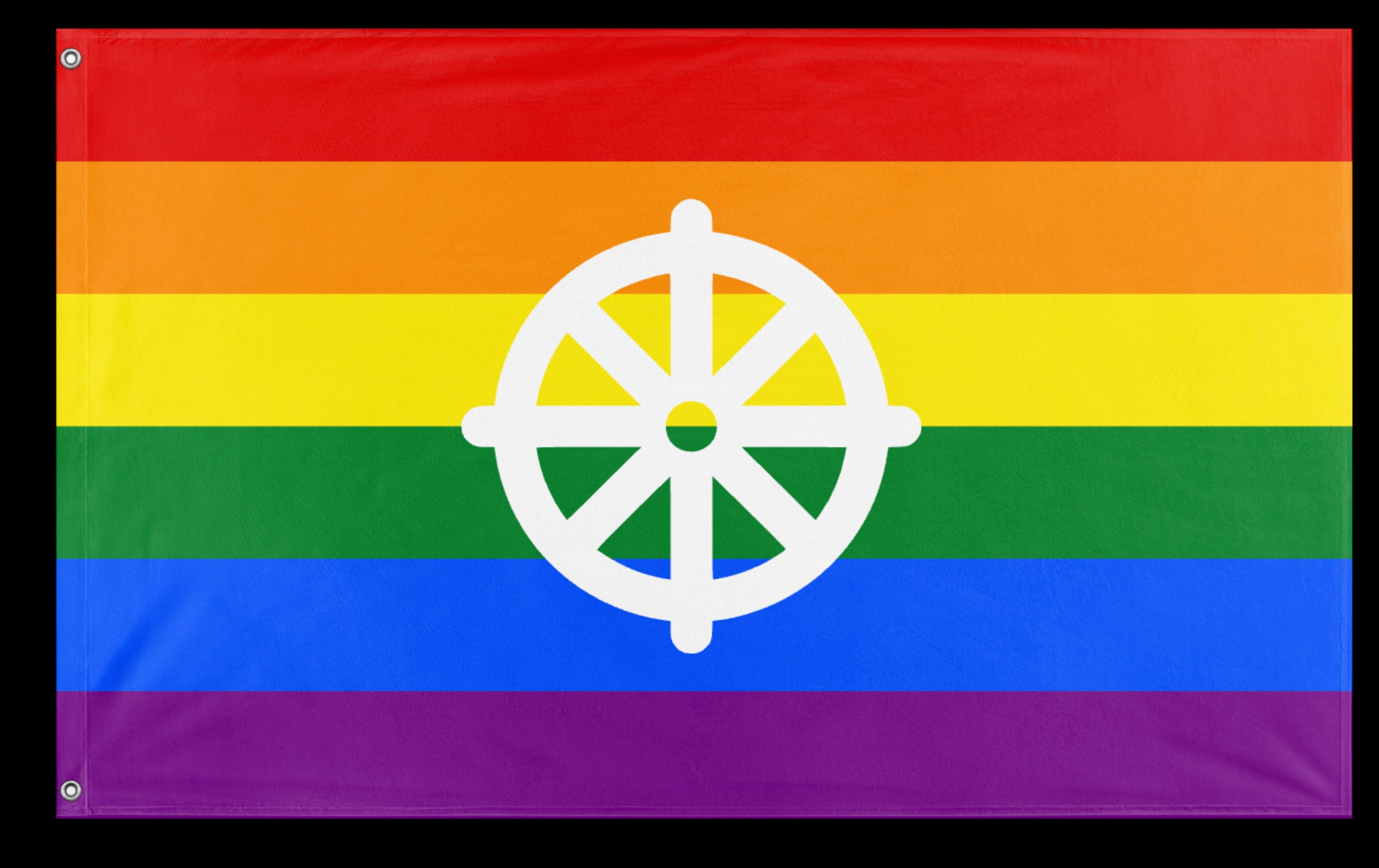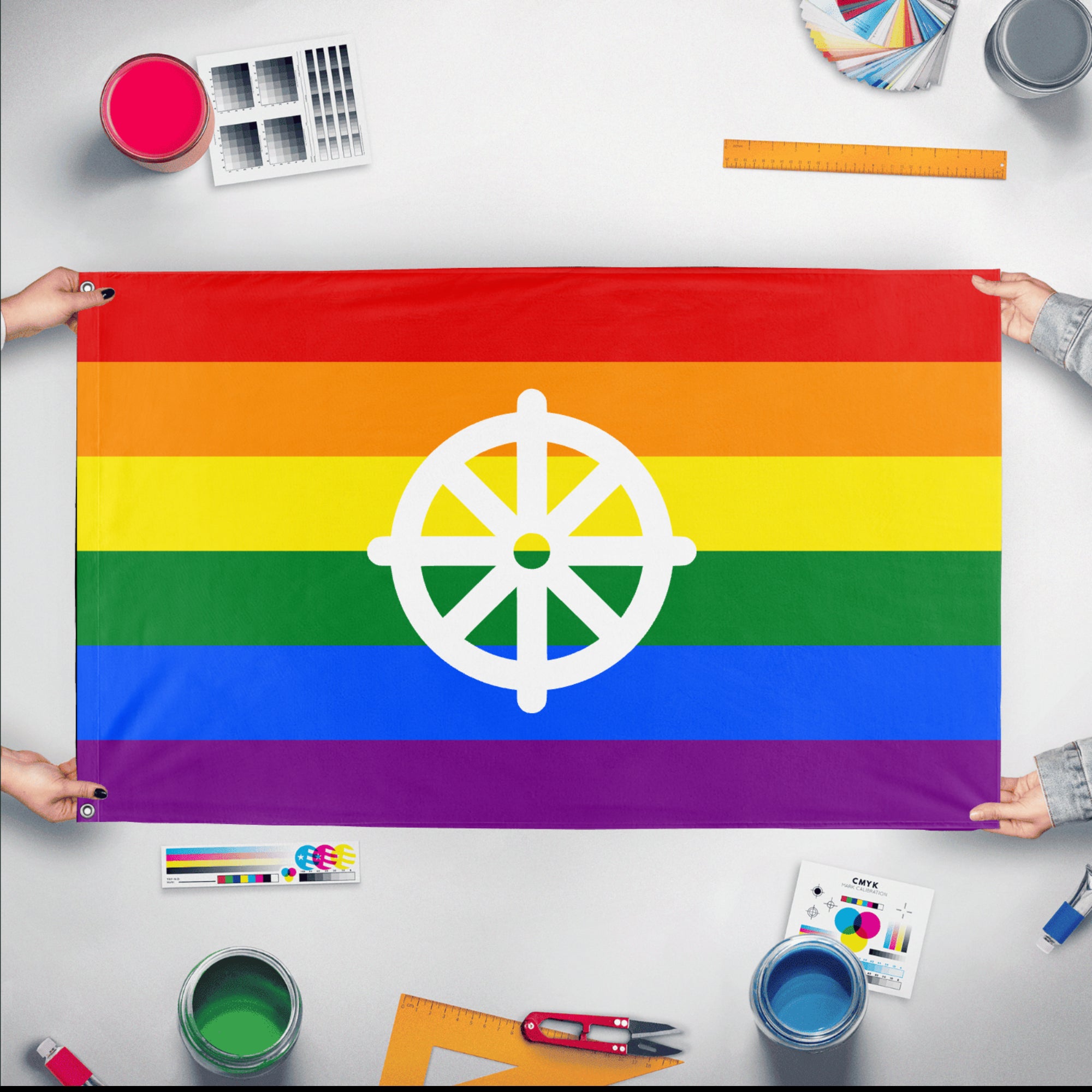 ✒️ The Buddhist Pride Flag is a symbol that represents LGBTQ+ individuals who identify with Buddhism, highlighting the harmony between Buddhist principles and diverse sexual and gender identities. Although there is no single universally recognized design, variations often incorporate traditional Buddhist colors—such as those found in the Buddhist flag (blue, yellow, red, white, and orange)—combined with rainbow elements to signify LGBTQ+ pride. The flag promotes acceptance, compassion, and inclusivity within Buddhist communities, affirming the dignity and spiritual worth of LGBTQ+ practitioners. It is used in events and organizations that support queer Buddhists and encourage dialogue on the intersection of faith and identity.