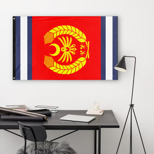 Our 3x5ft flags are made of 100% polyester knit; equipped with grommets for an authentic look and feel. This custom flag design is available as both a one-sided wall flag, or a double-sided display flag.