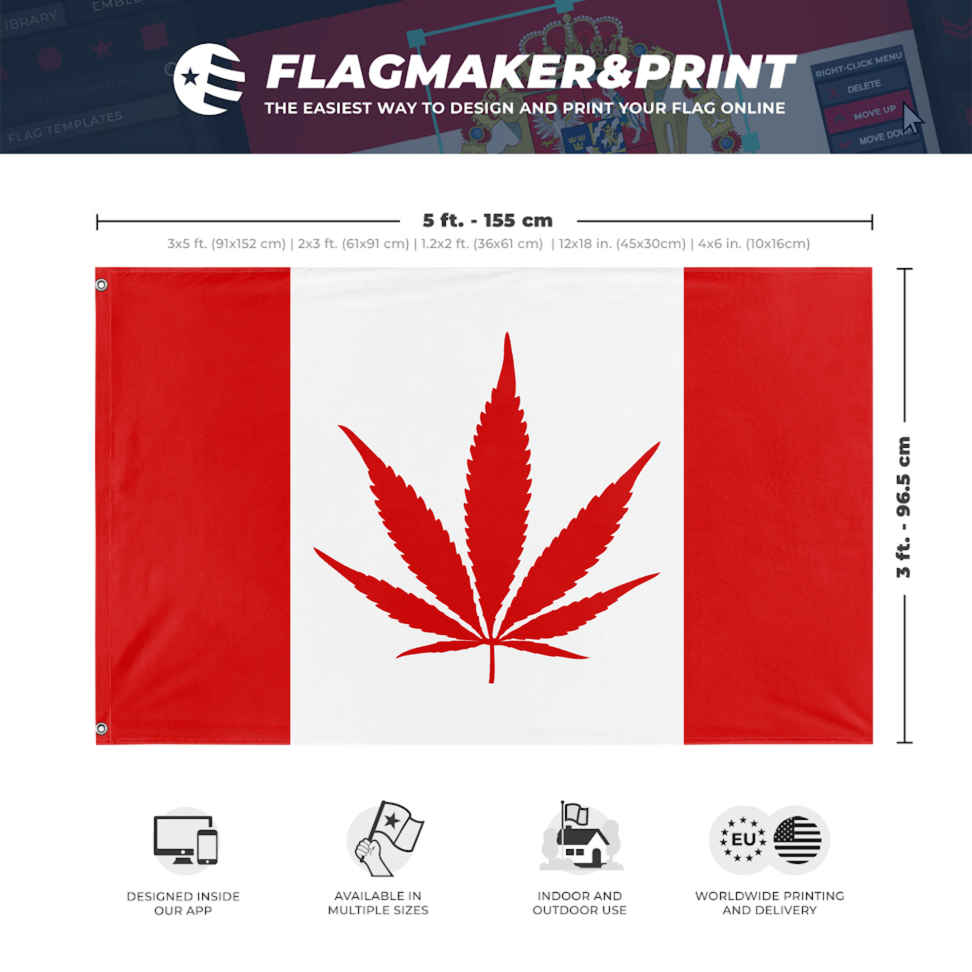Our integrated flag maker app allows anyone to design and print their own flag. After finishing your design, you can print your flag in three easy steps.