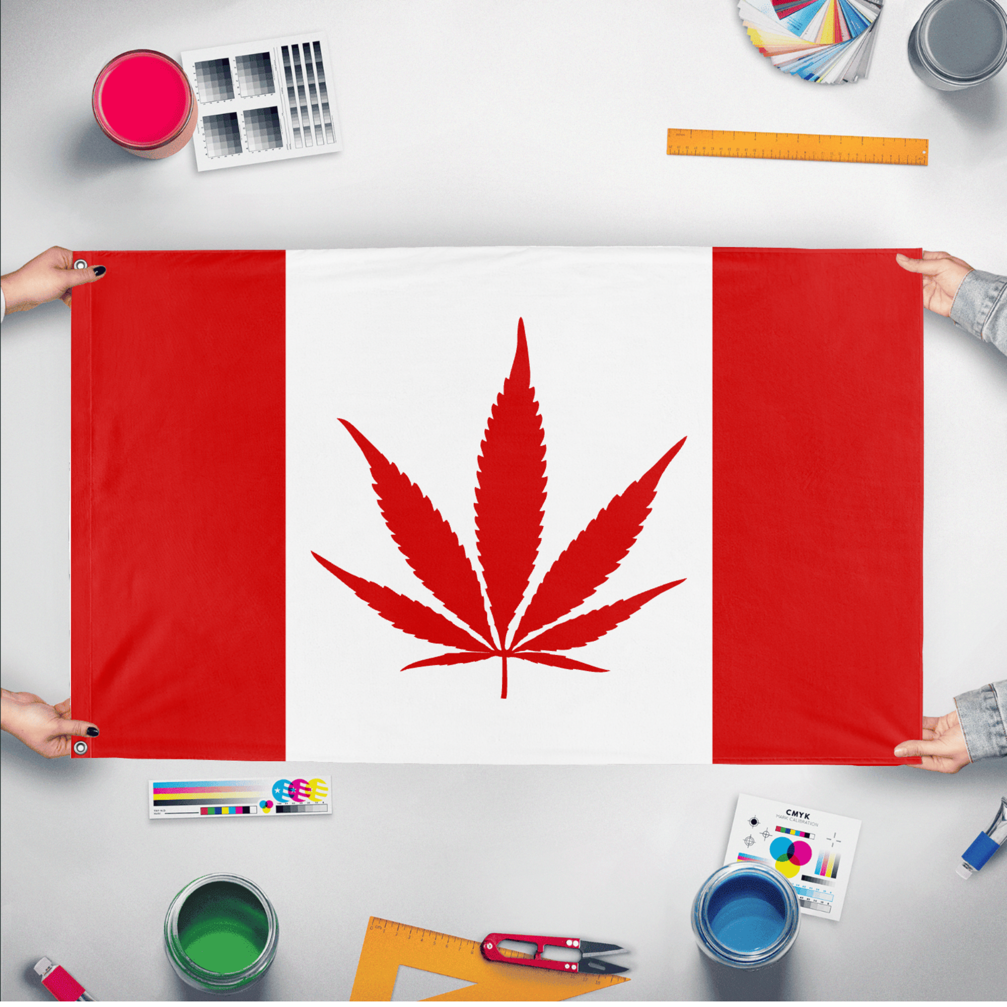 ✒️ The Canada Weed Flag is an unofficial, satirical variation of the national flag of Canada, in which the iconic red maple leaf is replaced with a stylized cannabis leaf. Widely used in pop culture and activist circles, the flag symbolizes support for cannabis legalization and broader drug policy reform. It gained particular prominence in the years leading up to and following Canada's nationwide legalization of recreational cannabis in 2018. Often seen at protests, festivals, and public gatherings, the Canada Weed Flag serves as a visual expression of cannabis culture and advocacy, blending national identity with evolving social attitudes toward marijuana use.