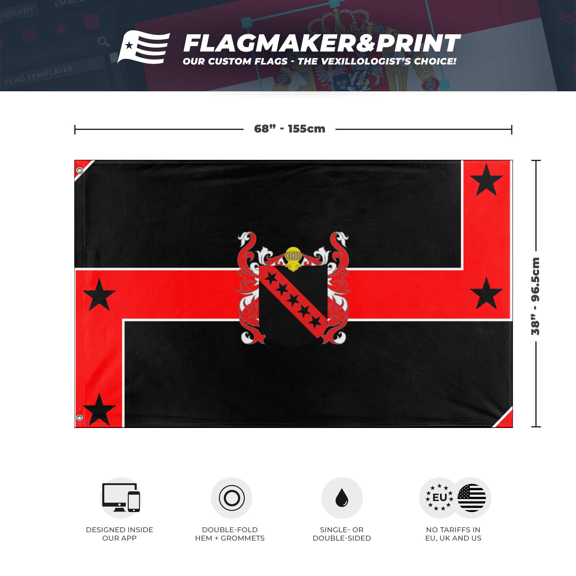 📐 Custom Personalized Flag made with Flagmaker & Print. Learn more about our product line-up on the Product Details page. This custom flag design is available as both a one-sided wall flag, or a double-sided display flag