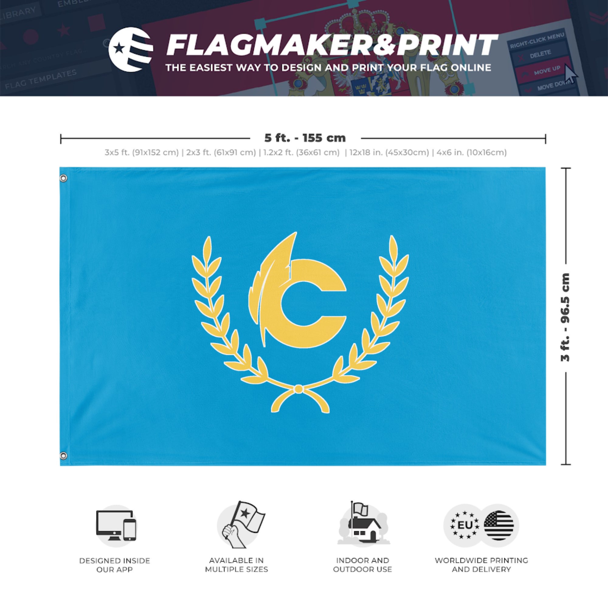 Our integrated flag maker app allows anyone to design and print their own flag. After finishing your design, you can print your flag in three easy steps.