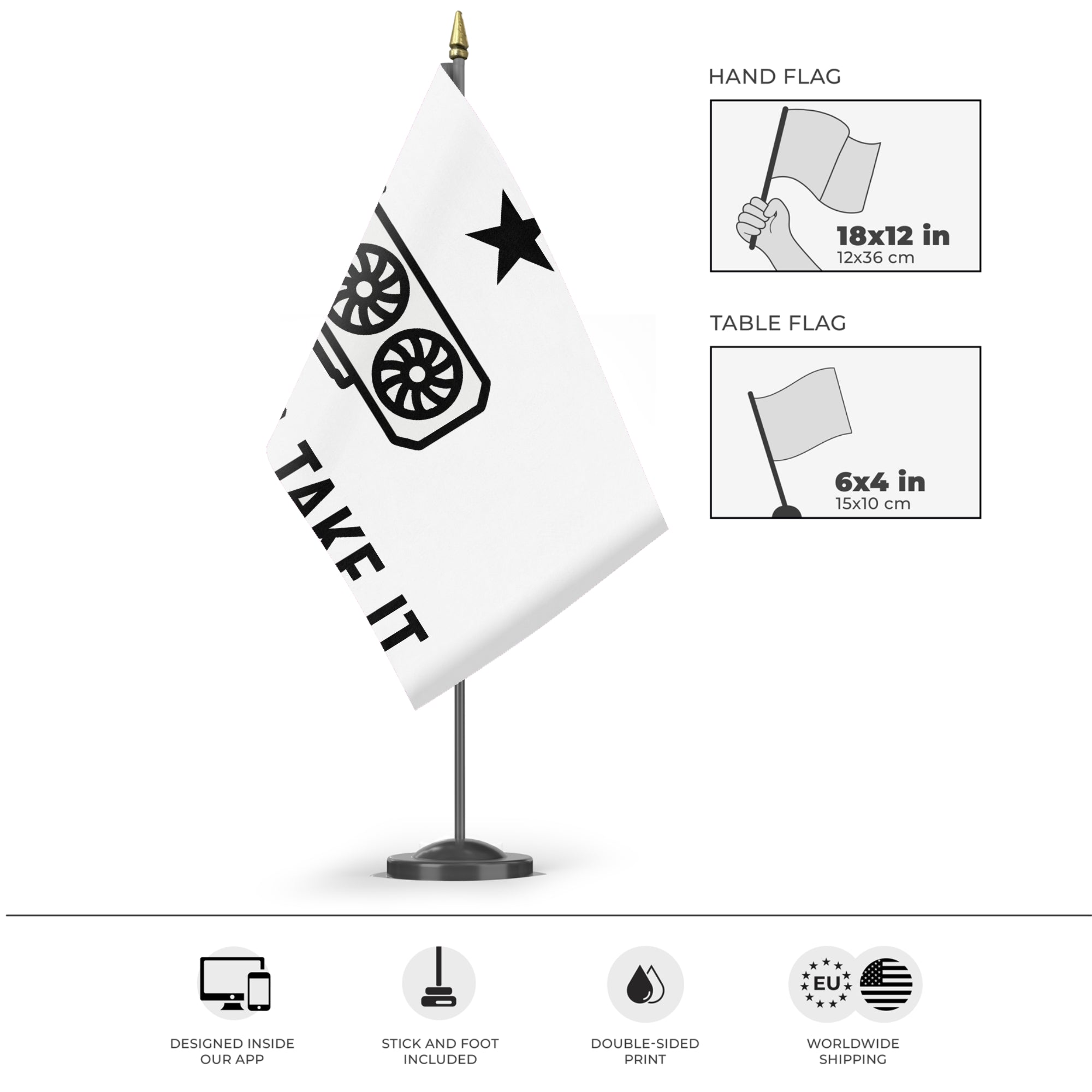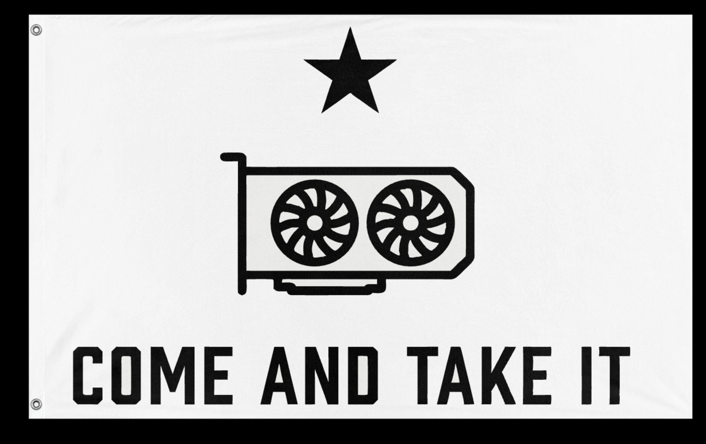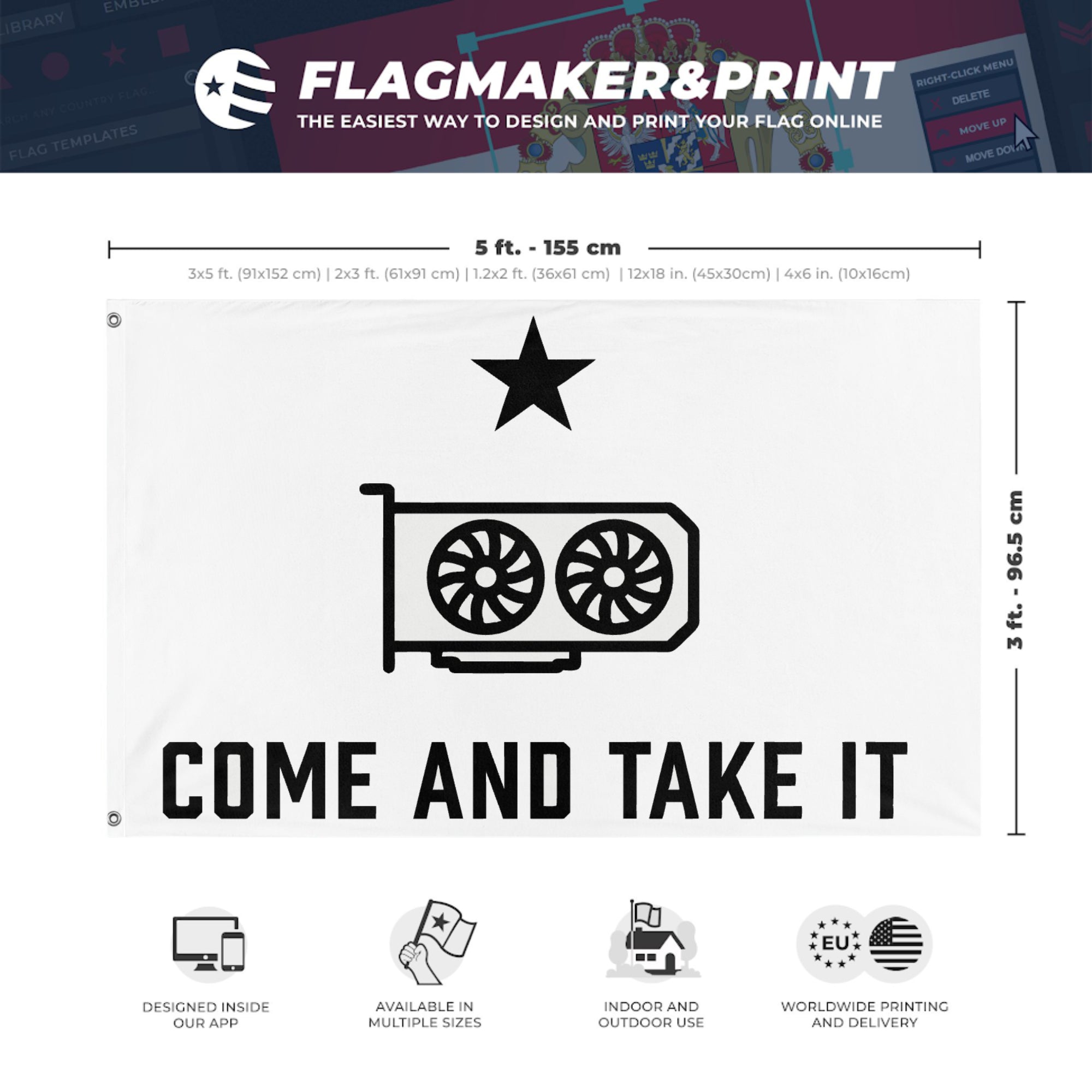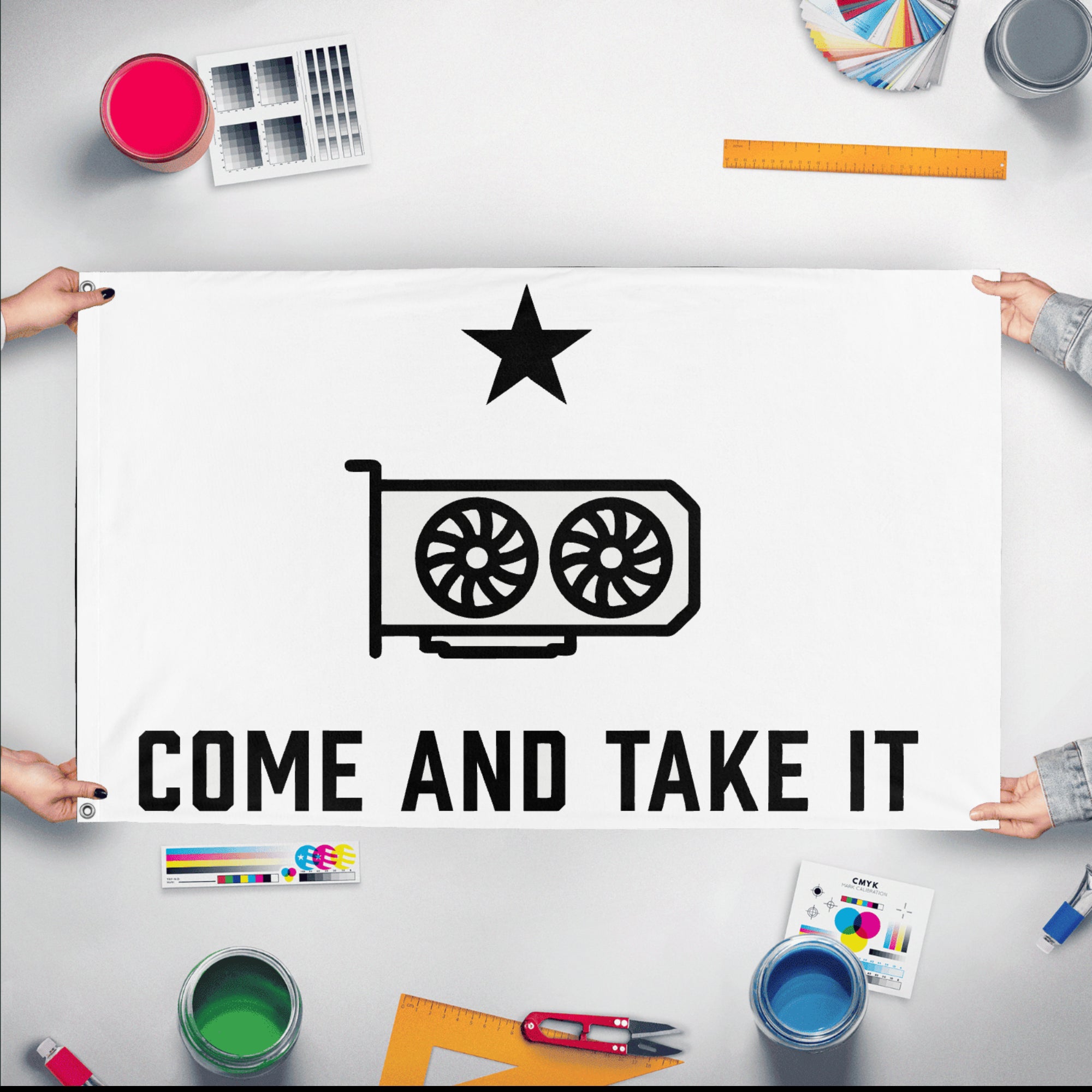 ✒️ The Come and Take It GPU Flag is a modern emblem inspired by the historic “Come and Take It” slogan, adapted to represent the technology and cryptocurrency communities. The flag typically features a bold graphic of a computer GPU (graphics processing unit) alongside the phrase “Come and Take It,” symbolizing the fierce protection of hardware resources, especially during times of high demand or scarcity. Its design reflects themes of digital freedom, innovation, and defiance against control or restriction in the tech world. The flag is popular among gamers, miners, and tech enthusiasts advocating for open access to computing power.