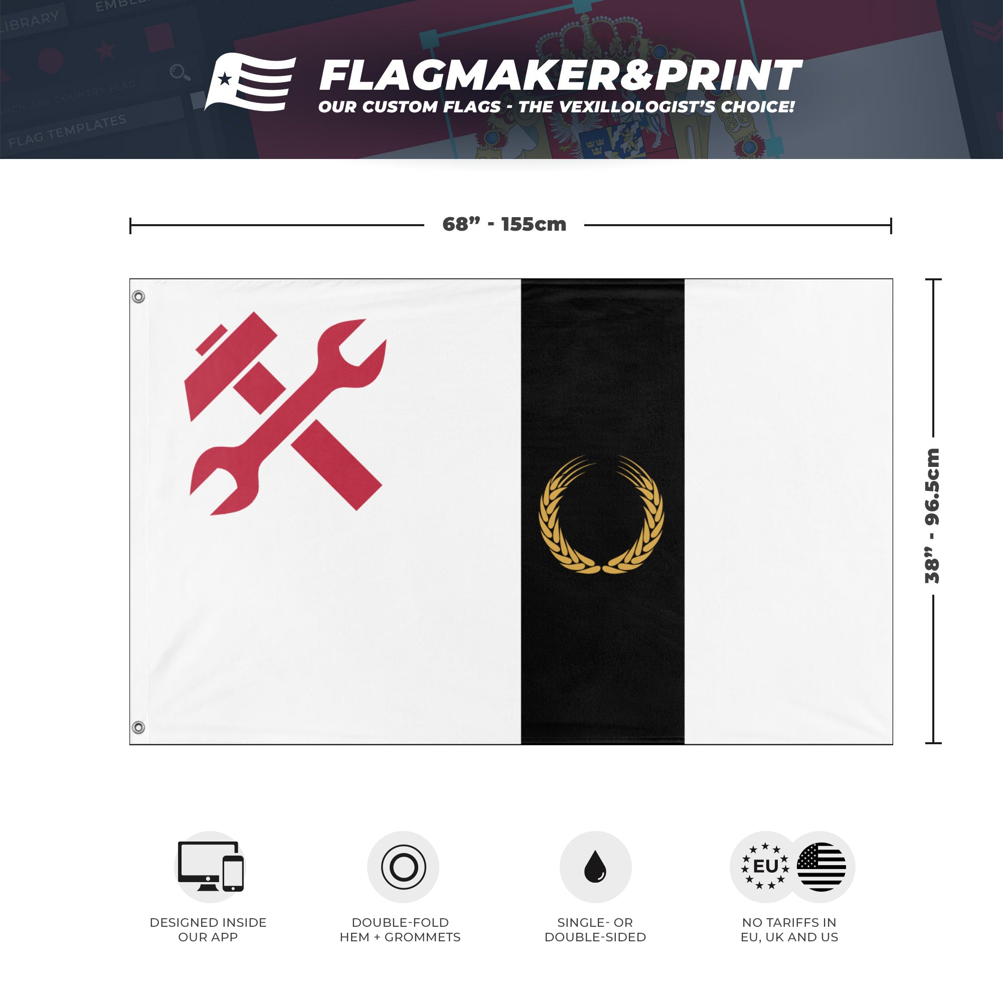 📐 Custom Personalized Flag made with Flagmaker & Print. Learn more about our product line-up on the Product Details page. This custom flag design is available as both a one-sided wall flag, or a double-sided display flag