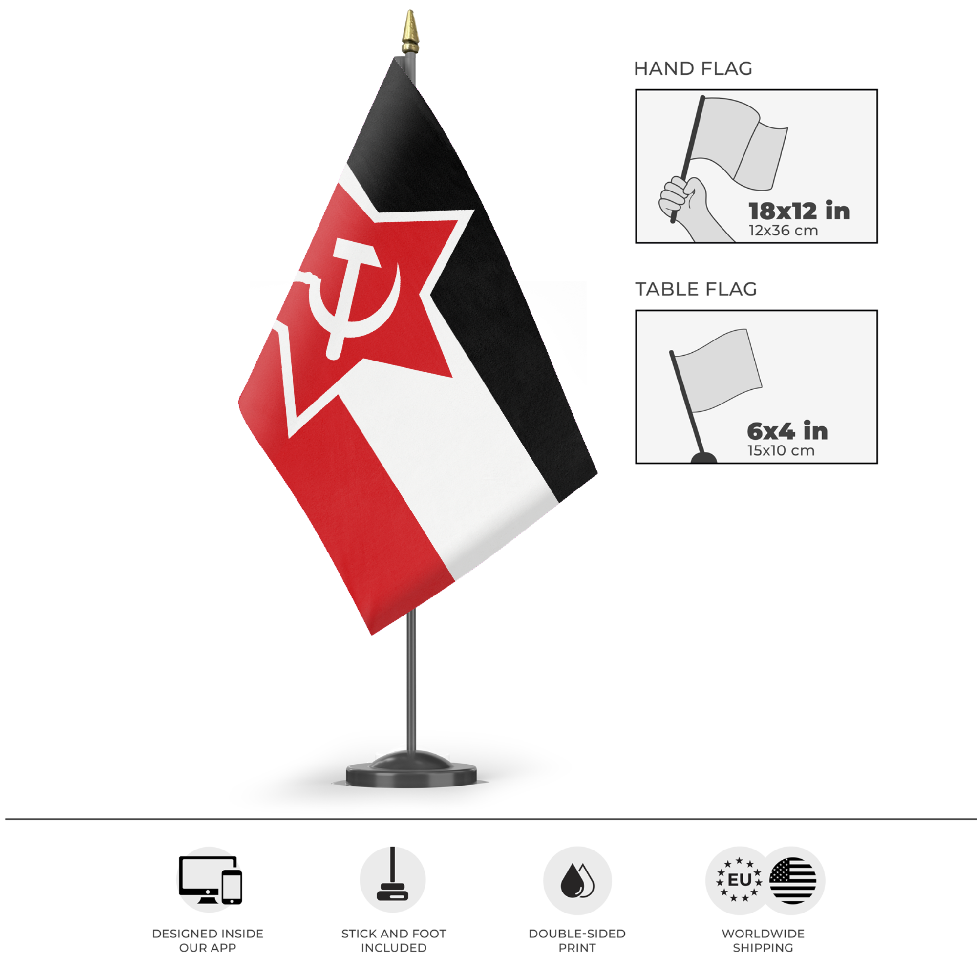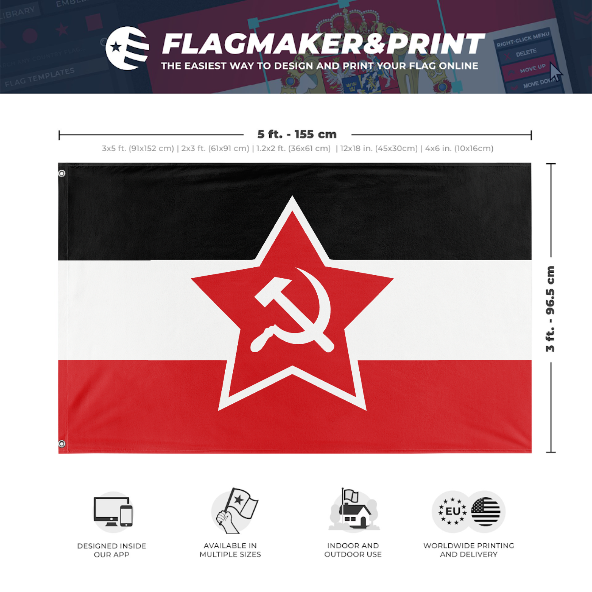 Historically, this specific iteration of the German flag serves as a visual exploration of "National Bolshevism" or a divergent socialist state that retains its pre-Weimar national identity. The use of the central star and the hammer and sickle reinforces its political alignment, while the tricolor background provides a stark contrast to the standard gold-red-black of the modern German Republic or the historical East German flag. This design is frequently utilized in digital historical simulations and European alt-history media to represent a formidable, revolutionary German power.