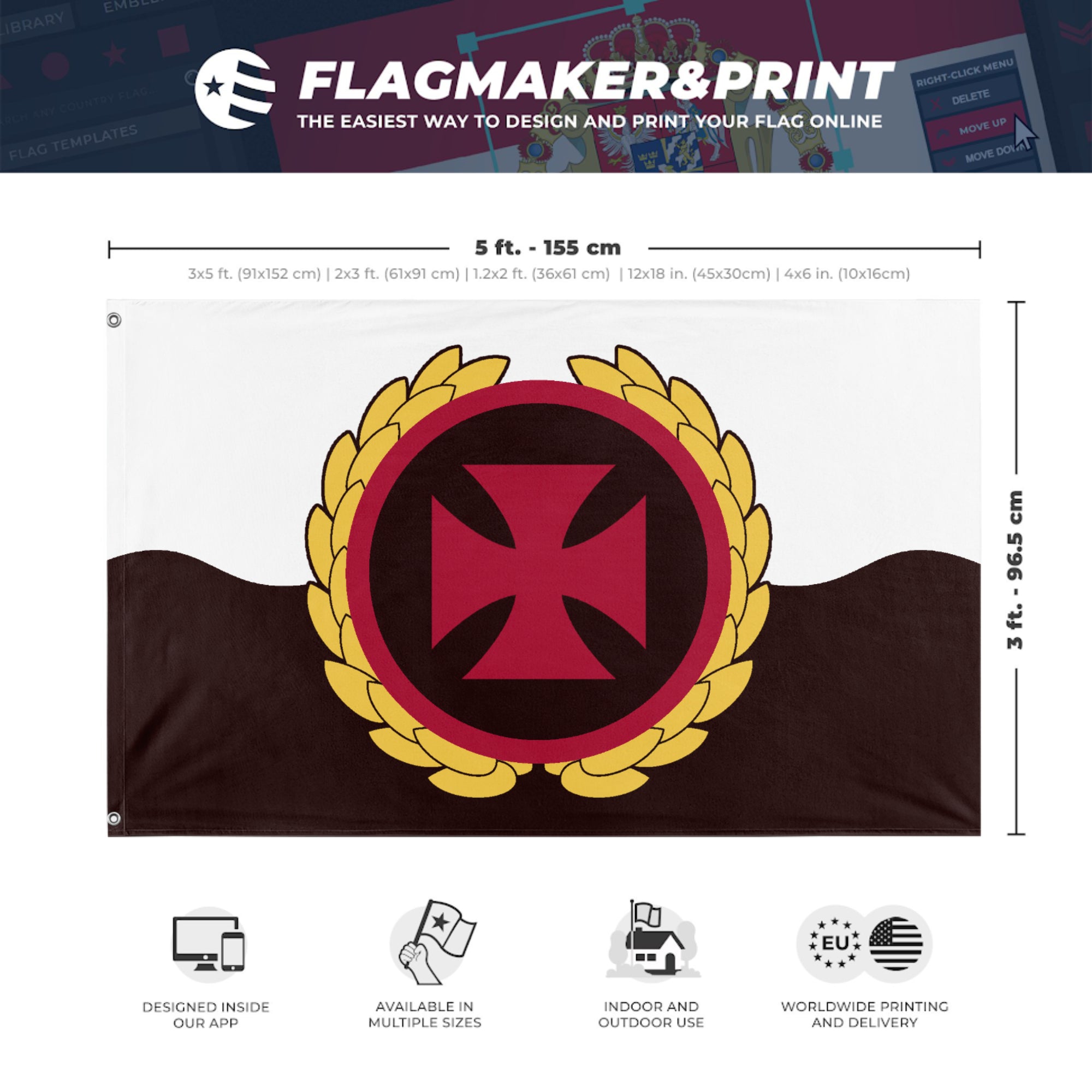 📐 Custom Personalized Flag made with Flagmaker & Print. Learn more about our product line-up on the Product Details page. This custom flag design is available as both a one-sided wall flag, or a double-sided display flag