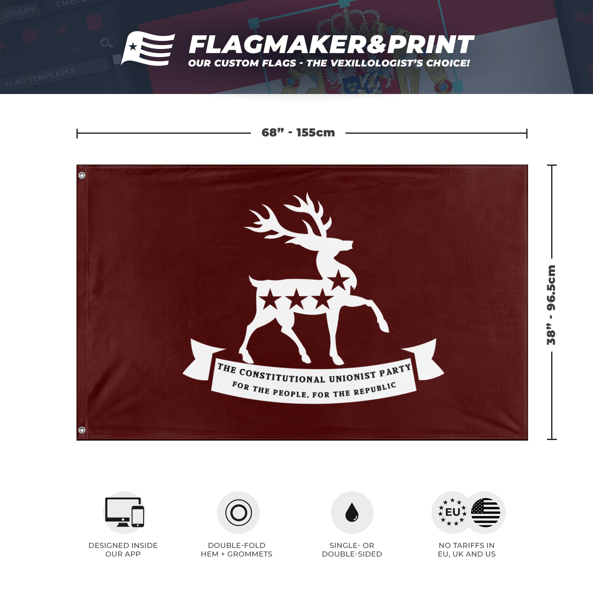 📐 Custom Personalized Flag made with Flagmaker & Print. Learn more about our product line-up on the Product Details page. This custom flag design is available as both a one-sided wall flag, or a double-sided display flag