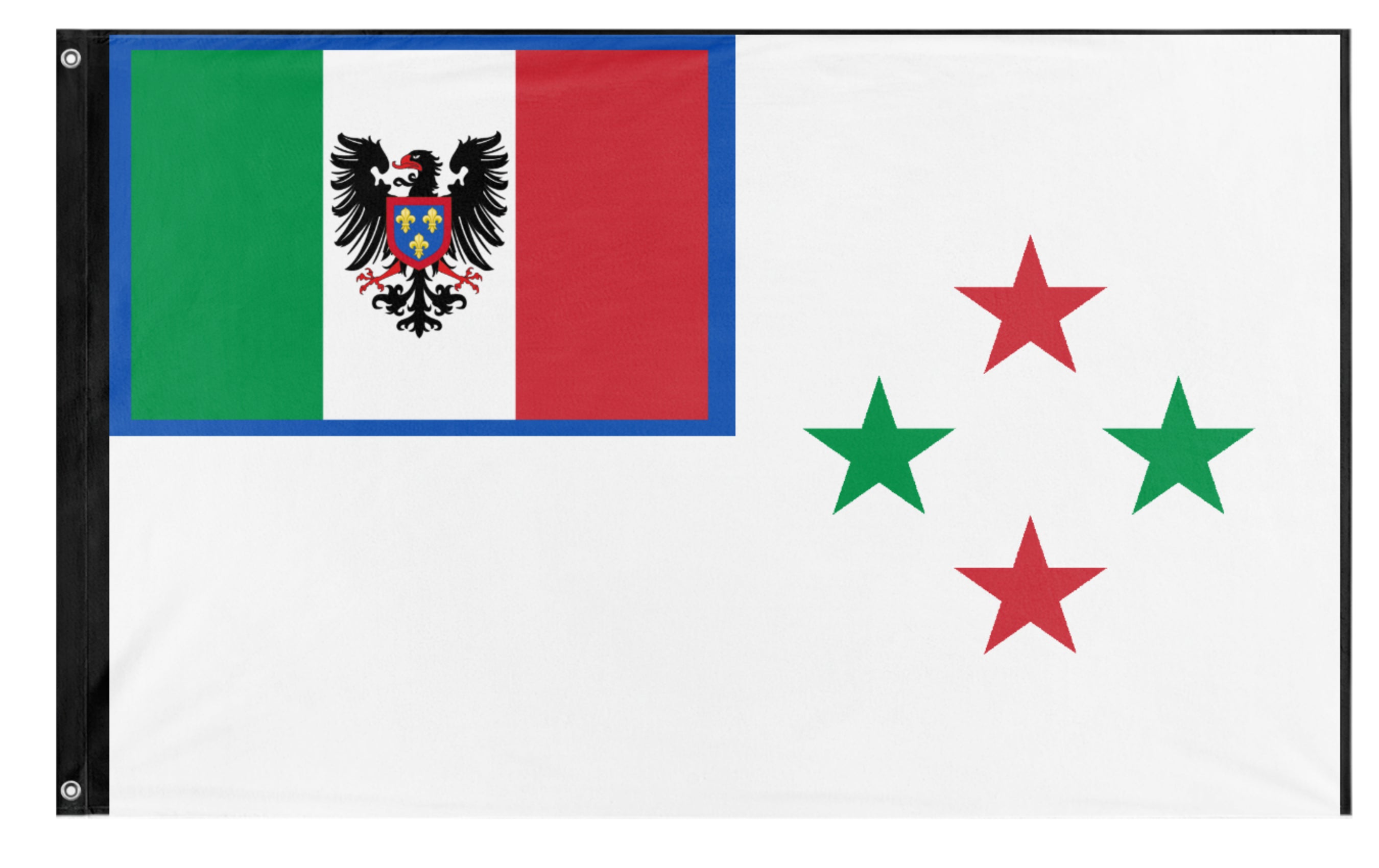 ✒️ Flag of the Dominon of Italo-America from my Kaiserreich Campaign as the Italian Empire after i annexed Rhode Island, Conneticut, New Jersey, and Southern New York after i defeated the US in a war.