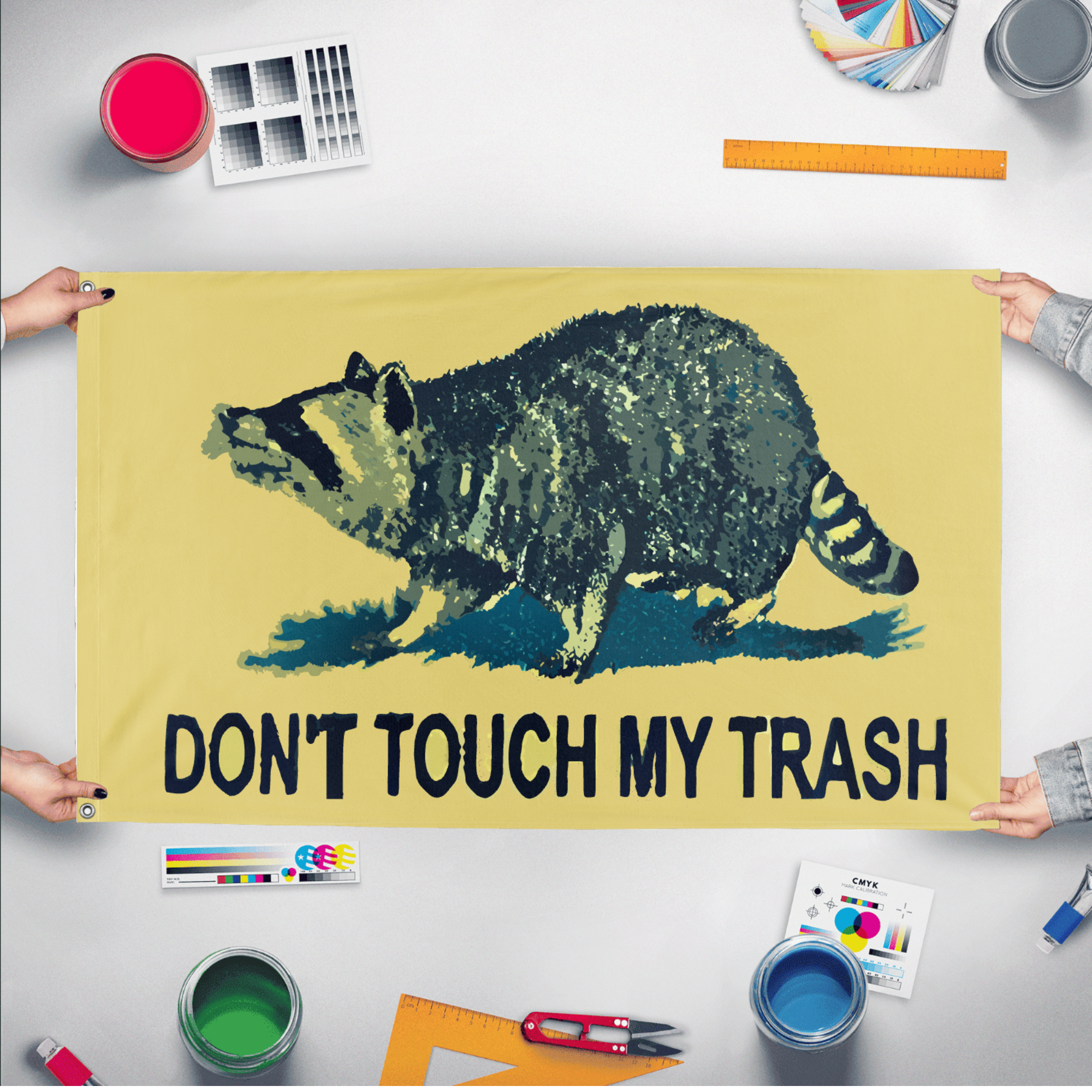 ✒️ The "Don't Touch My Trash" flag is an informal or humorous emblem used to express personal boundary and territoriality over one's refuse. Often featuring bold text or imagery related to waste bins, garbage, or refuse, the flag serves as a lighthearted warning against tampering with or removing someone’s trash. While not an official or widely recognized flag, it is commonly used in community or neighborhood settings to discourage scavenging or unauthorized handling of discarded items, reflecting a blend of humor and assertiveness in everyday social interactions.
