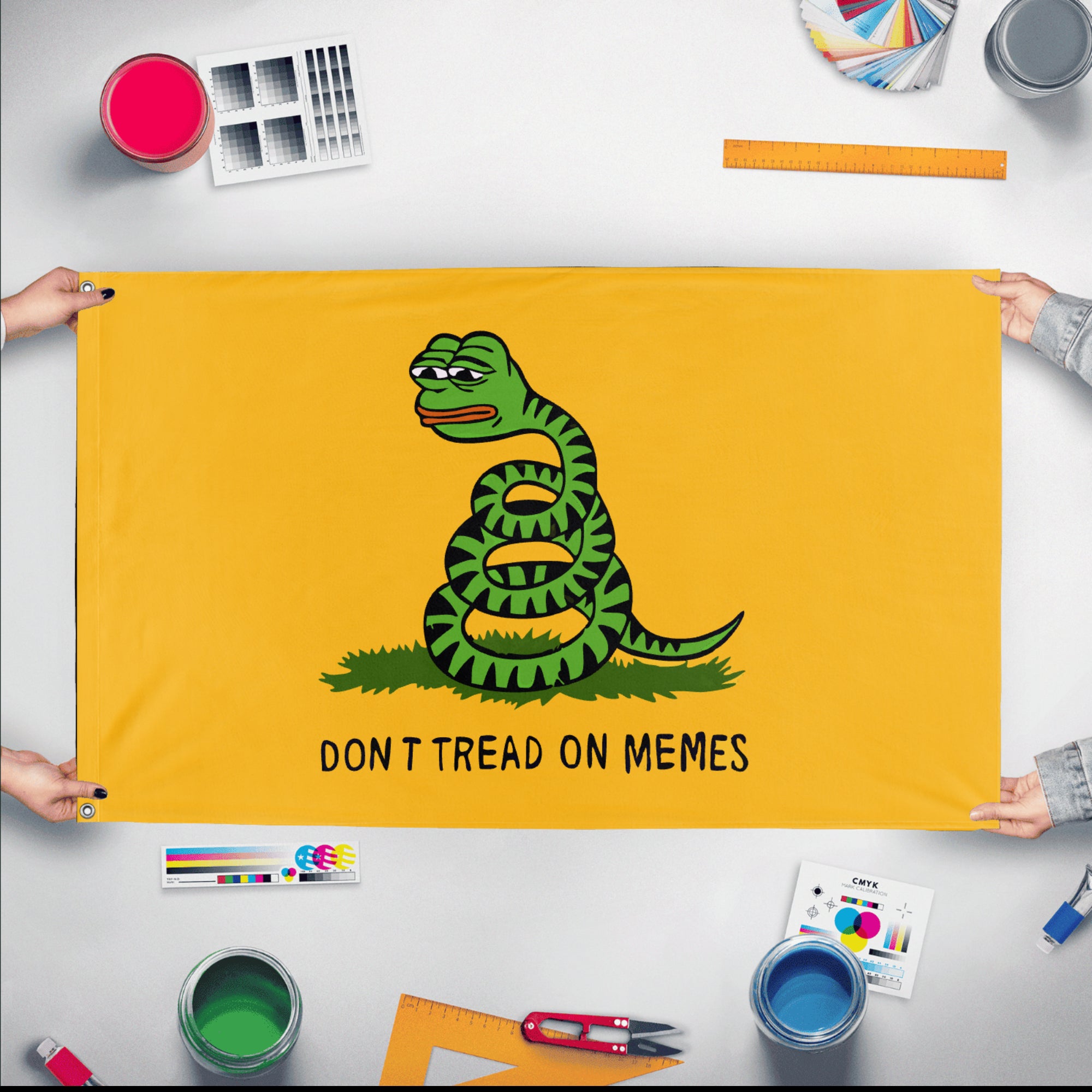 ✒️ The "Don't Tread On Memes" flag is a modern internet-inspired emblem that adapts the iconic Gadsden flag’s design and message to contemporary digital culture. Featuring a playful or stylized representation of popular meme imagery—often combined with the traditional yellow background and bold black text—the flag symbolizes the defense of internet freedom, creative expression, and meme culture against censorship or control. While unofficial and primarily used within online communities, the flag serves as a humorous yet defiant statement advocating for the preservation and celebration of meme-driven communication in the digital age.