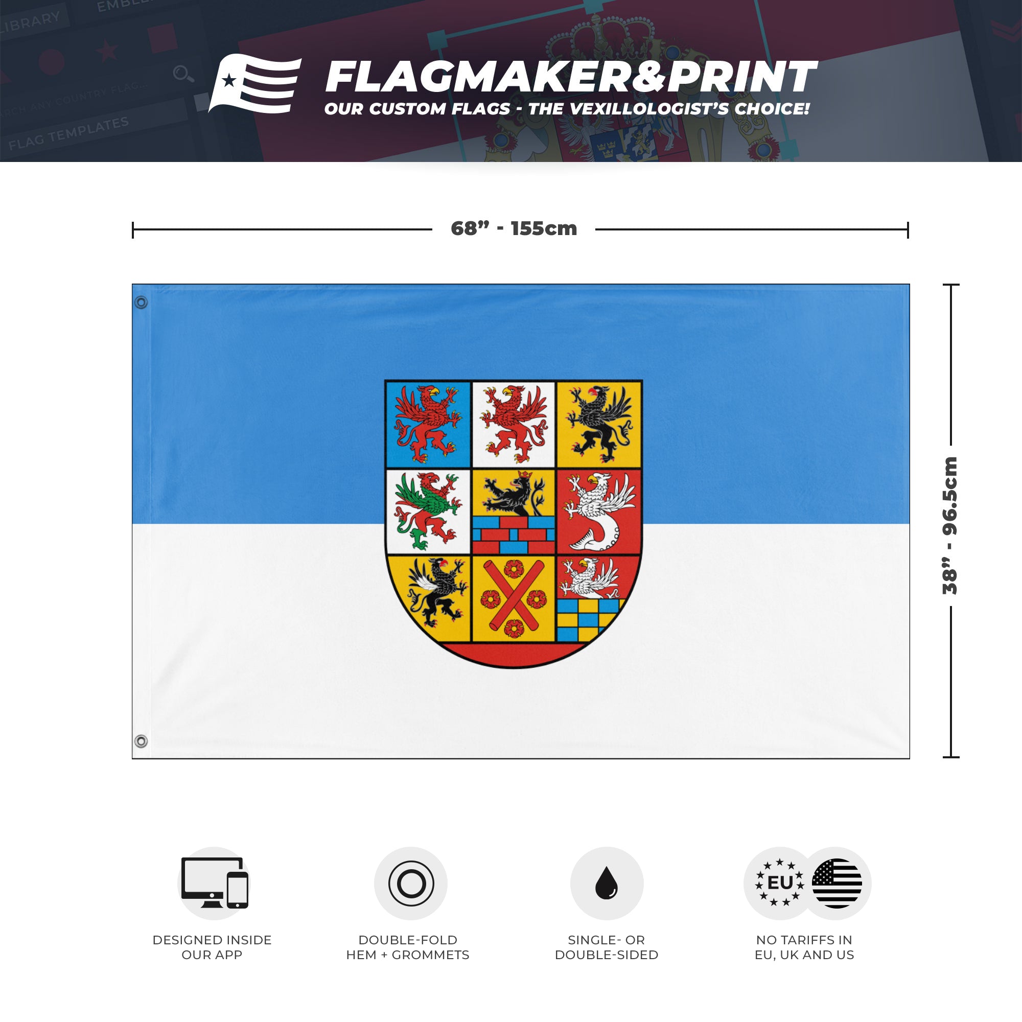 📐 Custom Personalized Flag made with Flagmaker & Print. Learn more about our product line-up on the Product Details page. This custom flag design is available as both a one-sided wall flag, or a double-sided display flag
