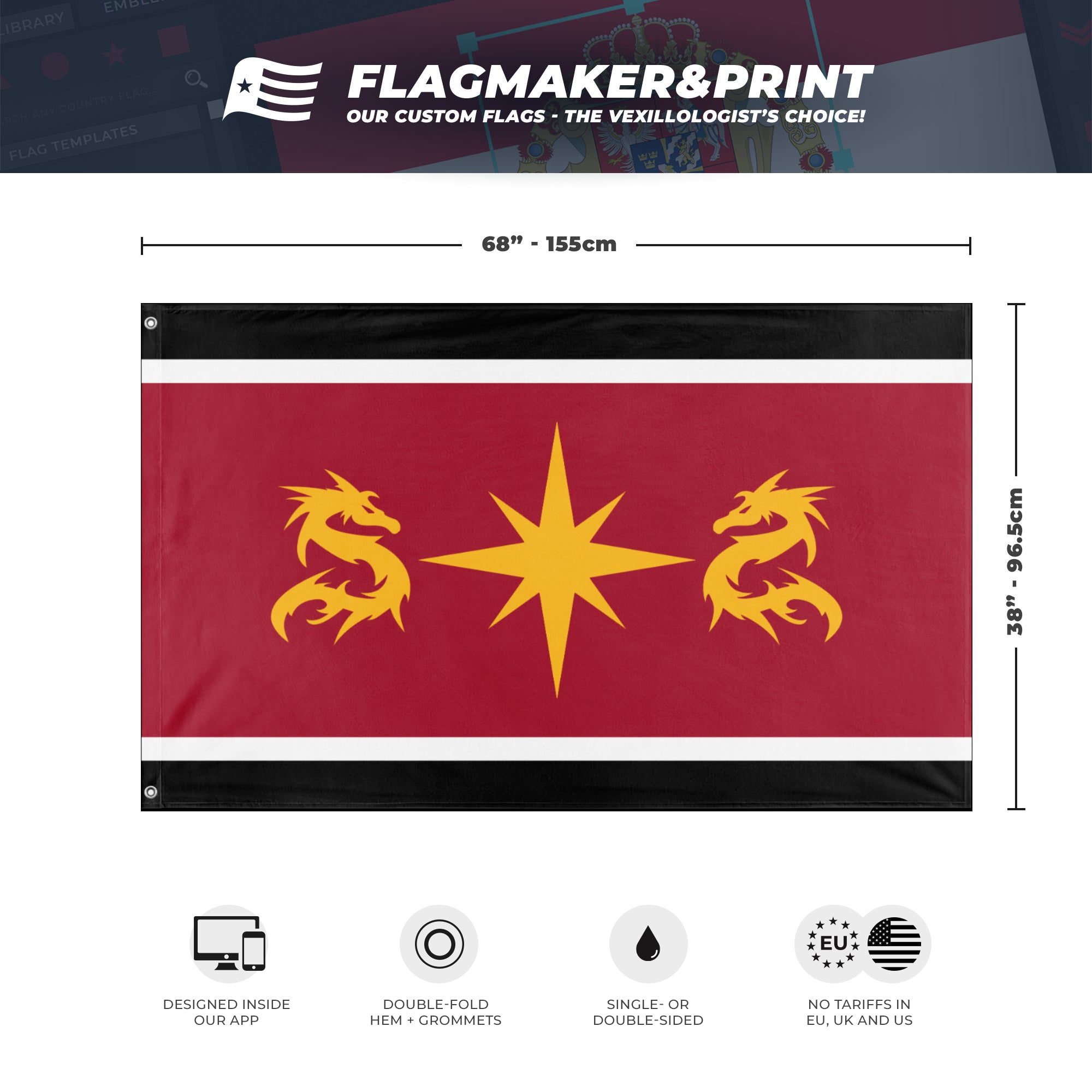 📐 Custom Personalized Flag made with Flagmaker & Print. Learn more about our product line-up on the Product Details page. This custom flag design is available as both a one-sided wall flag, or a double-sided display flag