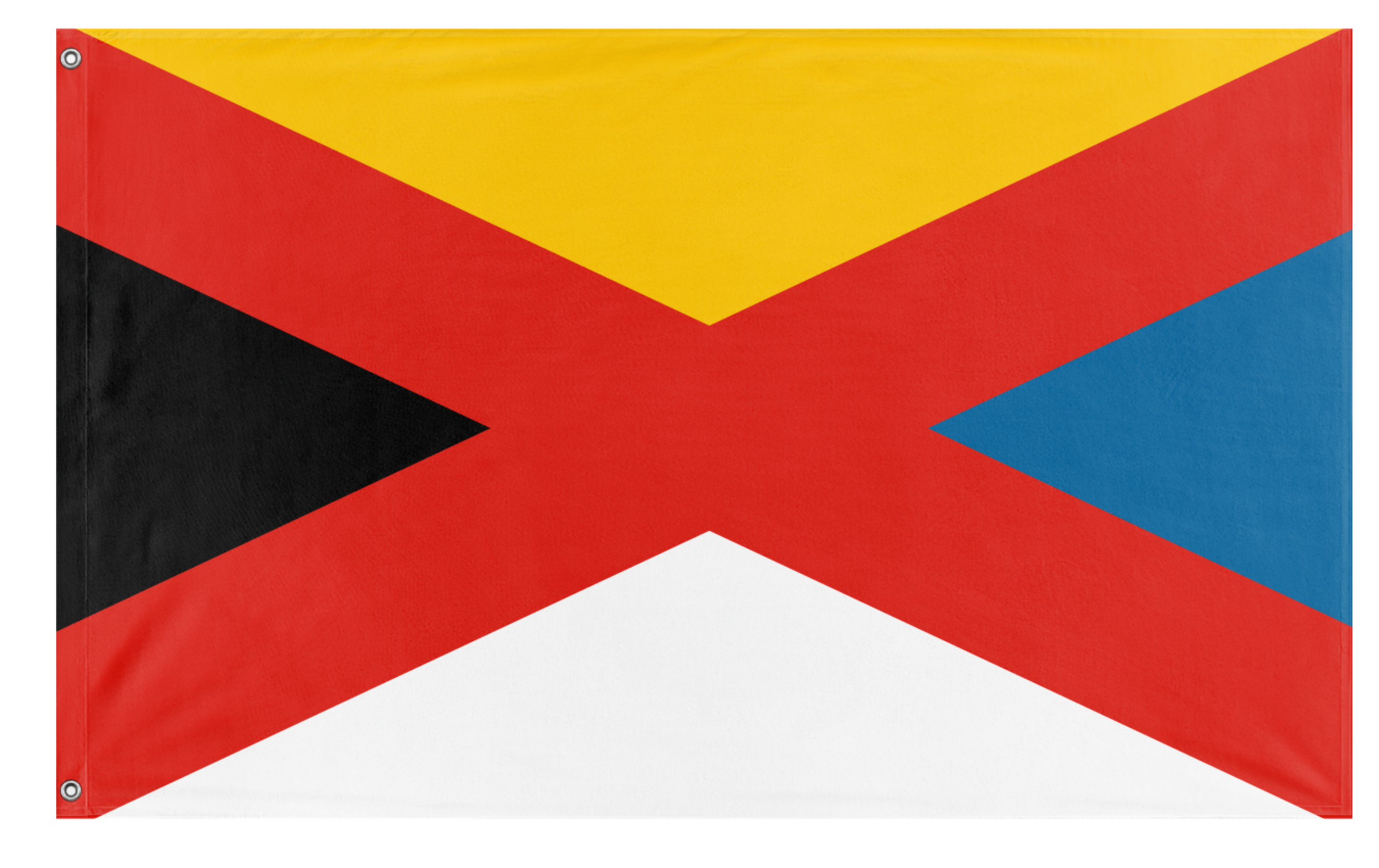 ✒️ A flag for the short-lived Empire of China, associated with its author, Yuan Shikai. This flag was the state and national emblem of the short-lived imperial monarchy established by Yuan Shikai, who reigned as the Hongxian Emperor from 1915 to 1916. The design is a significant modification of the "Five Races Under One Union" concept, which was originally represented by a five-striped horizontal flag used by the preceding Republic of China. In this imperial version, the field is divided into four triangles—yellow (top, representing the Manchu), black (left/hoist, for the Tibetan), blue (right/fly, for the Mongol), and white (bottom, for the Hui/Muslim peoples). A prominent red saltire (St. Andrew's cross) is overlaid, symbolizing the dominant Han ethnicity uniting the other four races under its central authority.