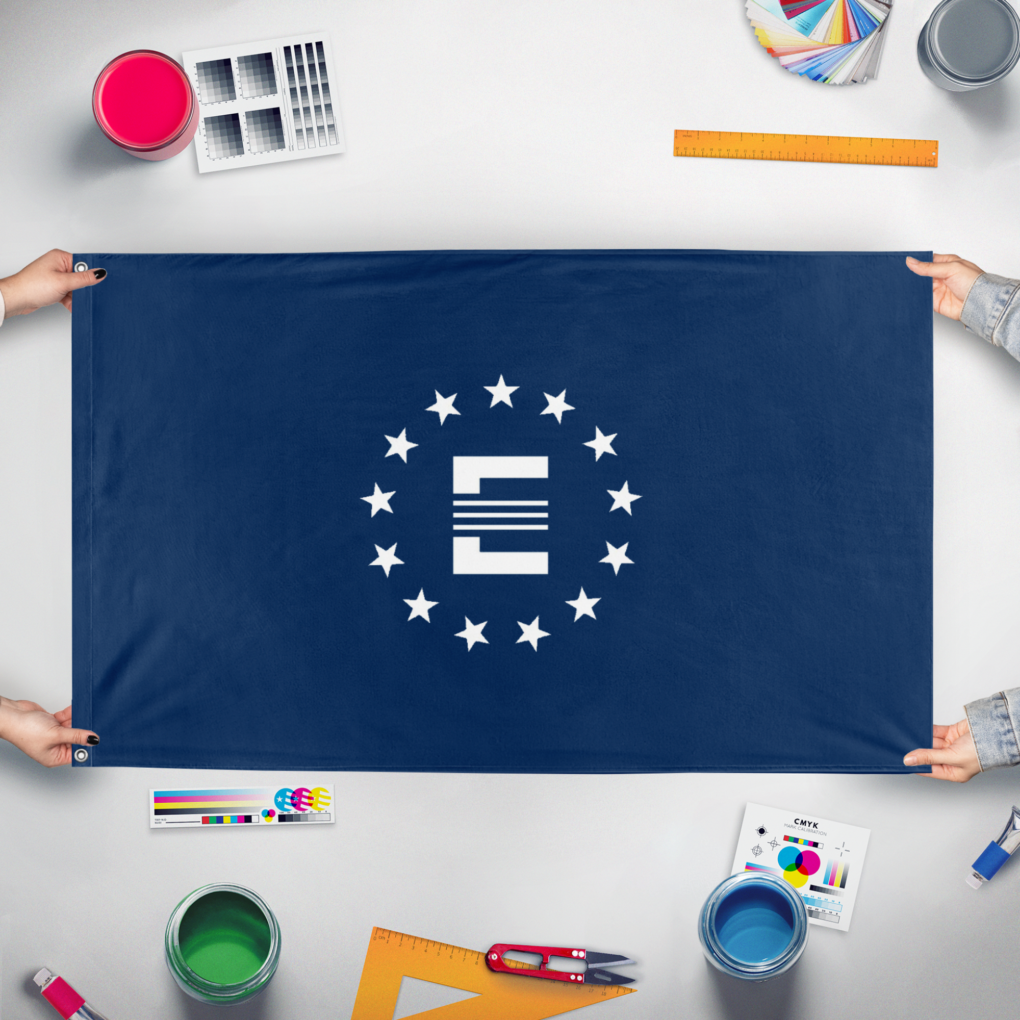 Our integrated flag maker app allows anyone to design and print their own flag. After finishing your design, you can print your flag in three easy steps.