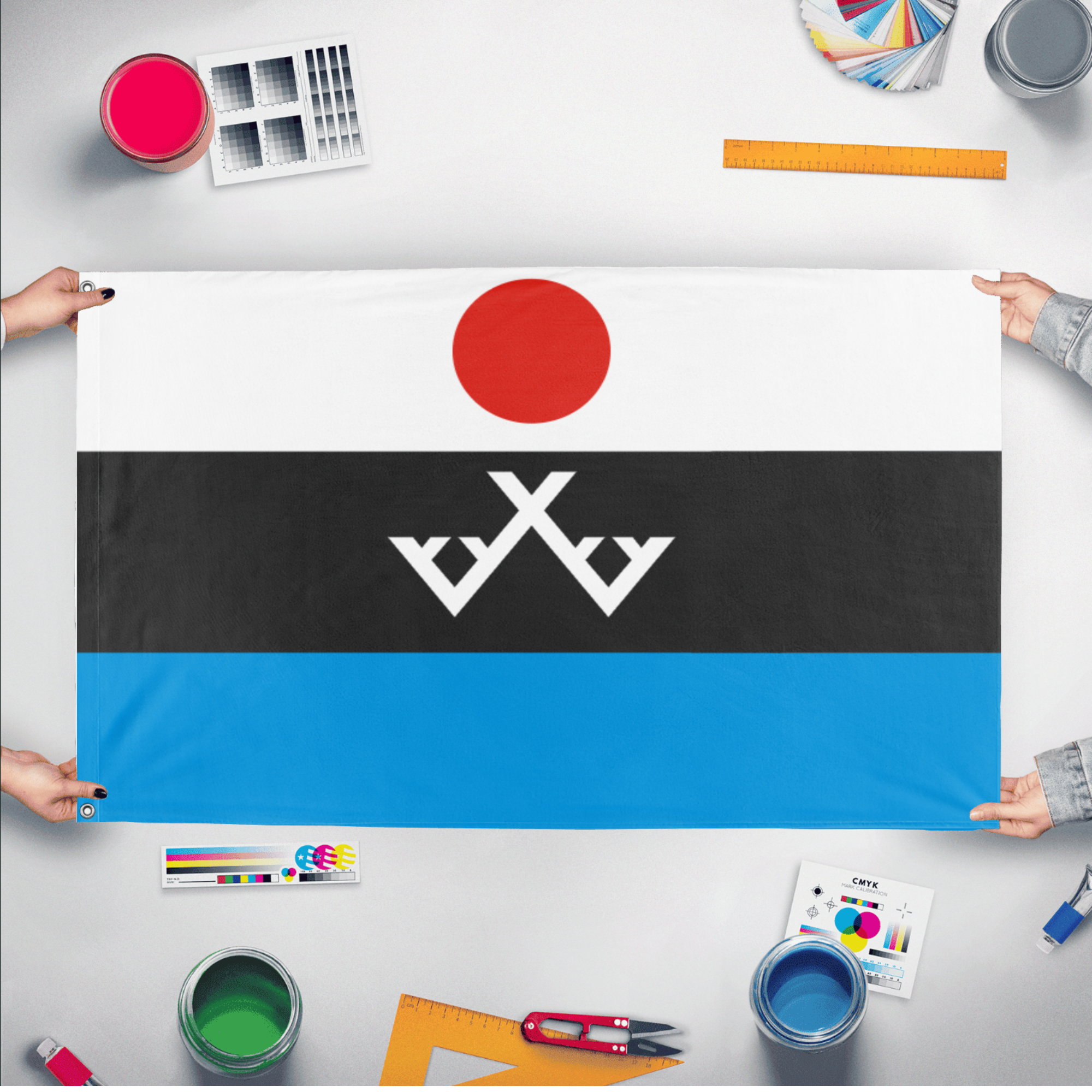 Our integrated flag maker app allows anyone to design and print their own flag. After finishing your design, you can print your flag in three easy steps.