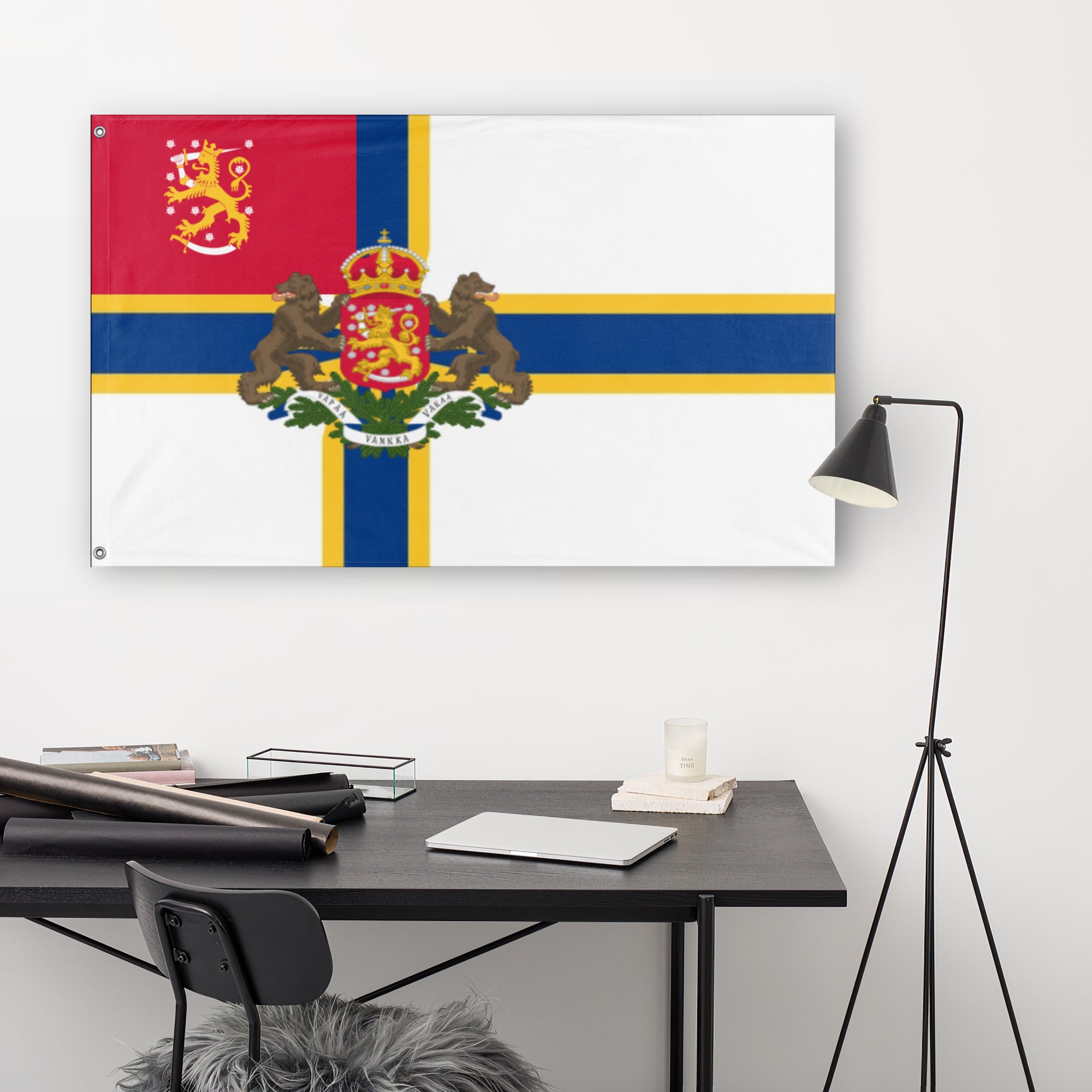 This 36”x60” wall flag is made of 100% polyester knit; equipped with grommets for an authentic look and feel. The flag is a one sided semitransparent print perfect for indoor applications.