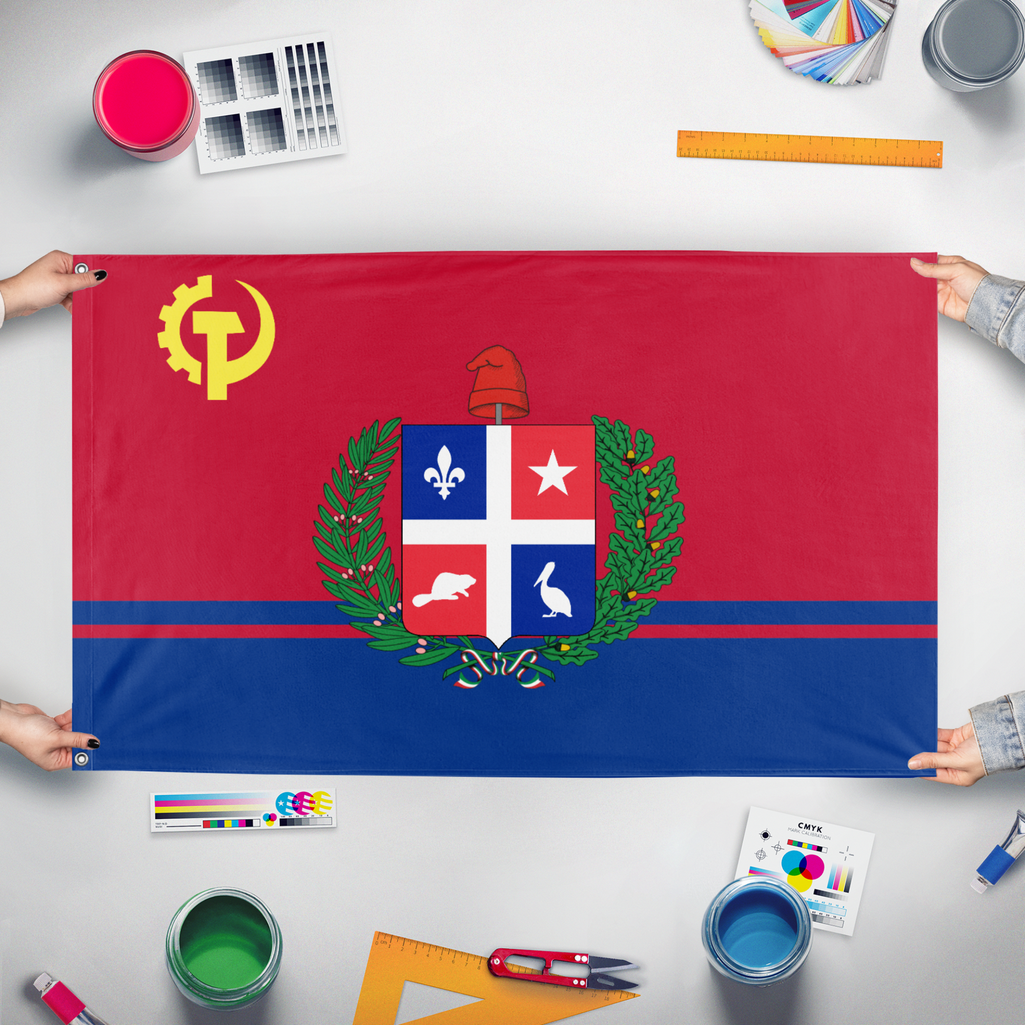 Our integrated flag maker app allows anyone to design and print their own flag. After finishing your design, you can print your flag in three easy steps.