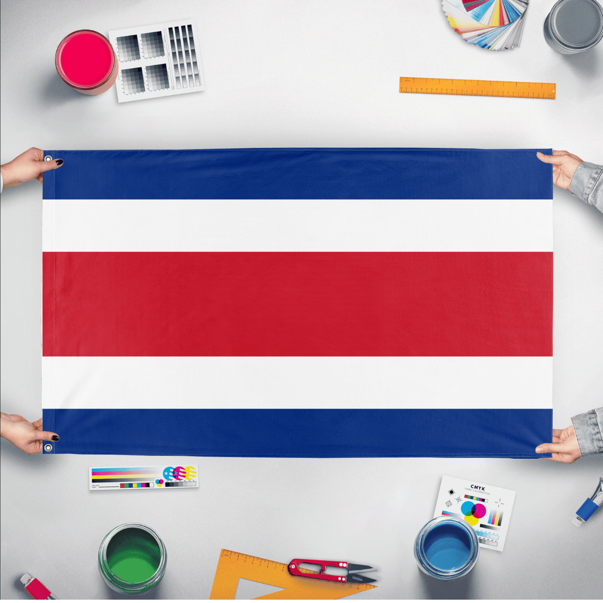 Flagmaker & Print offers best-of-class custom flags in over 32 sizes and variations. Our custom flag print offering ranges from 3x5ft outdoors flags to small desk and hand-waving flags.