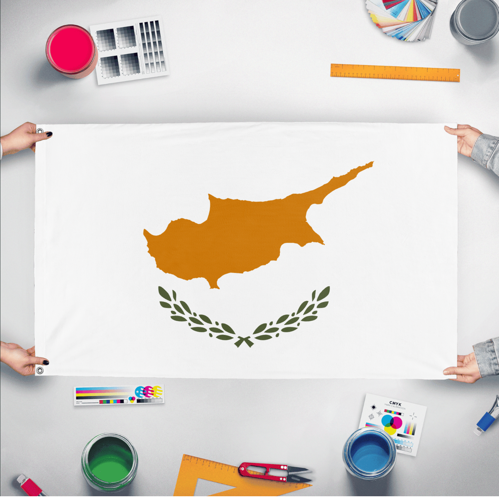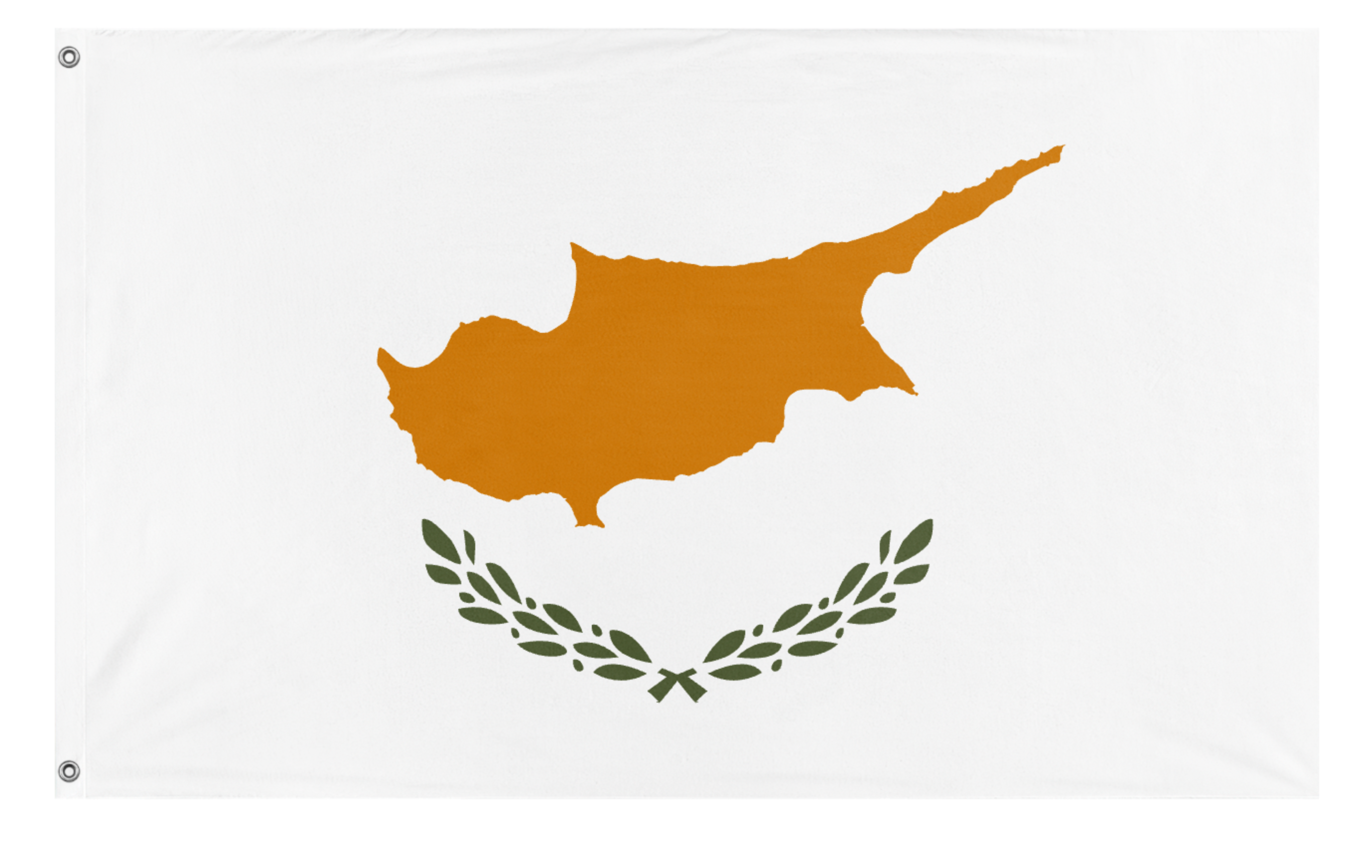 ✒️ The flag of Cyprus features a white field with a copper-orange silhouette of the island at its center, above two green crossed olive branches. The copper color symbolizes the large deposits of copper found on the island, while the olive branches represent peace and reconciliation between the Greek and Turkish communities. The white background stands for purity and peace. Officially adopted on August 16, 1960, following Cyprus’s independence from British rule, the flag reflects the nation’s aspirations for unity and harmony among its diverse population.