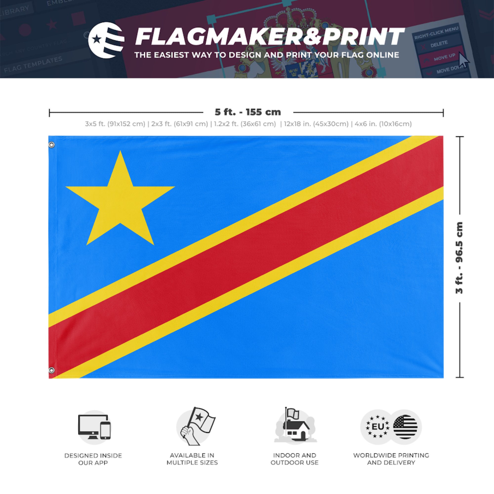 Our integrated flag maker app allows anyone to design and print their own flag. After finishing your design, you can print your flag in three easy steps.
